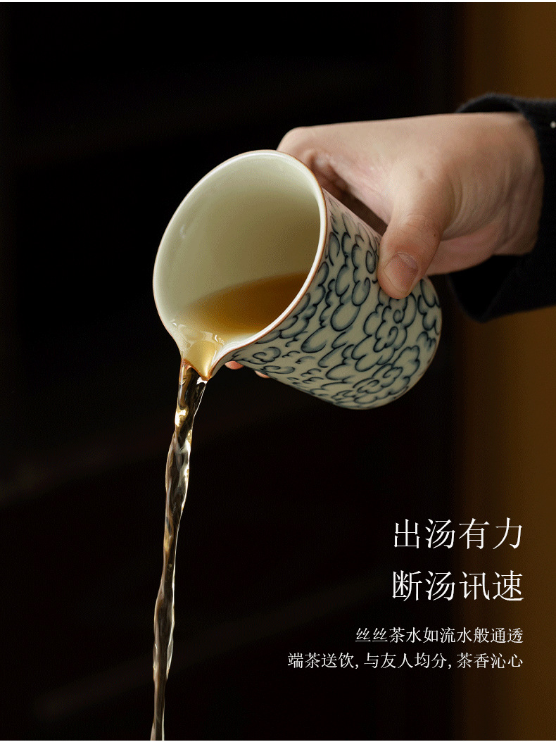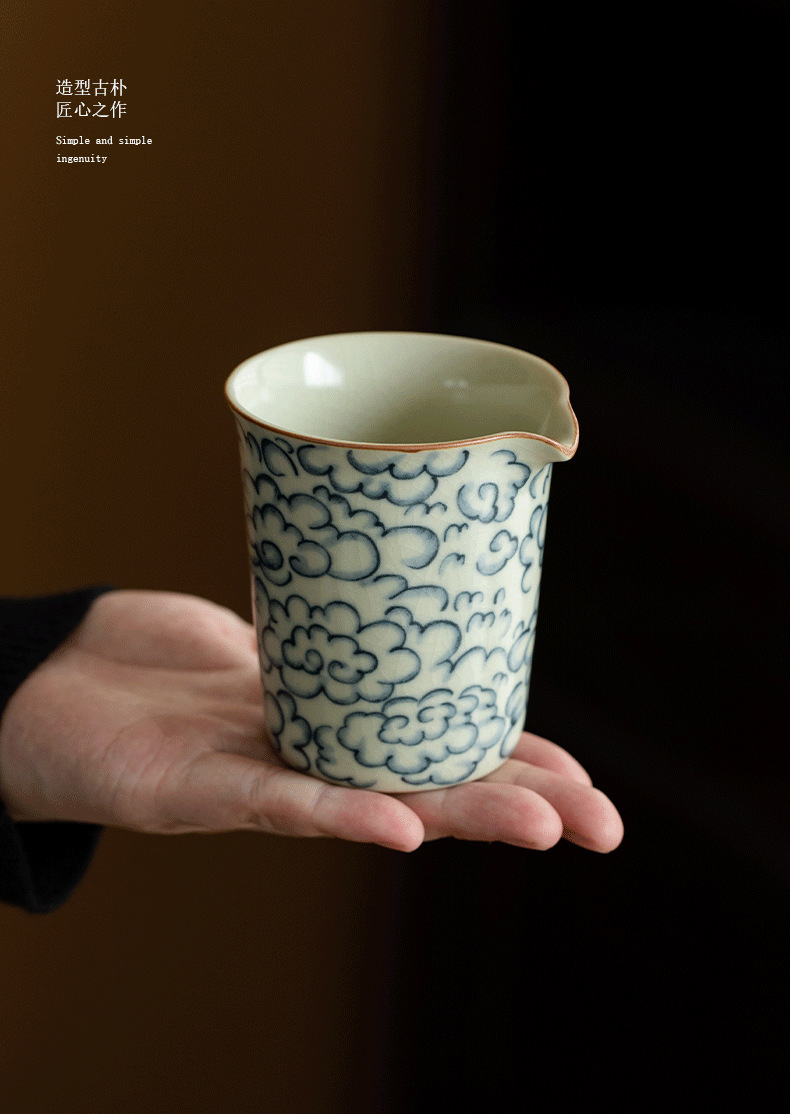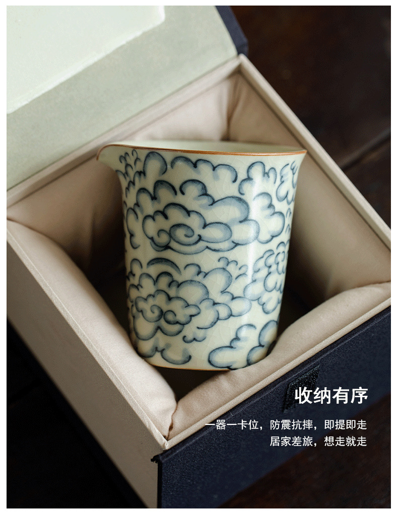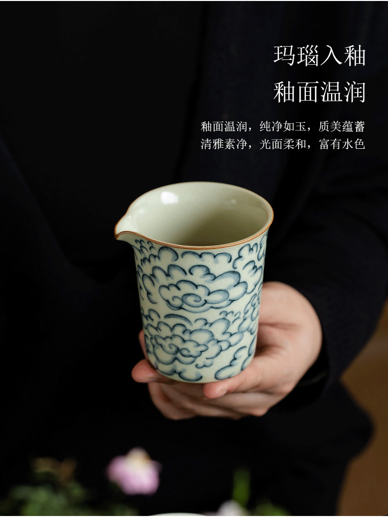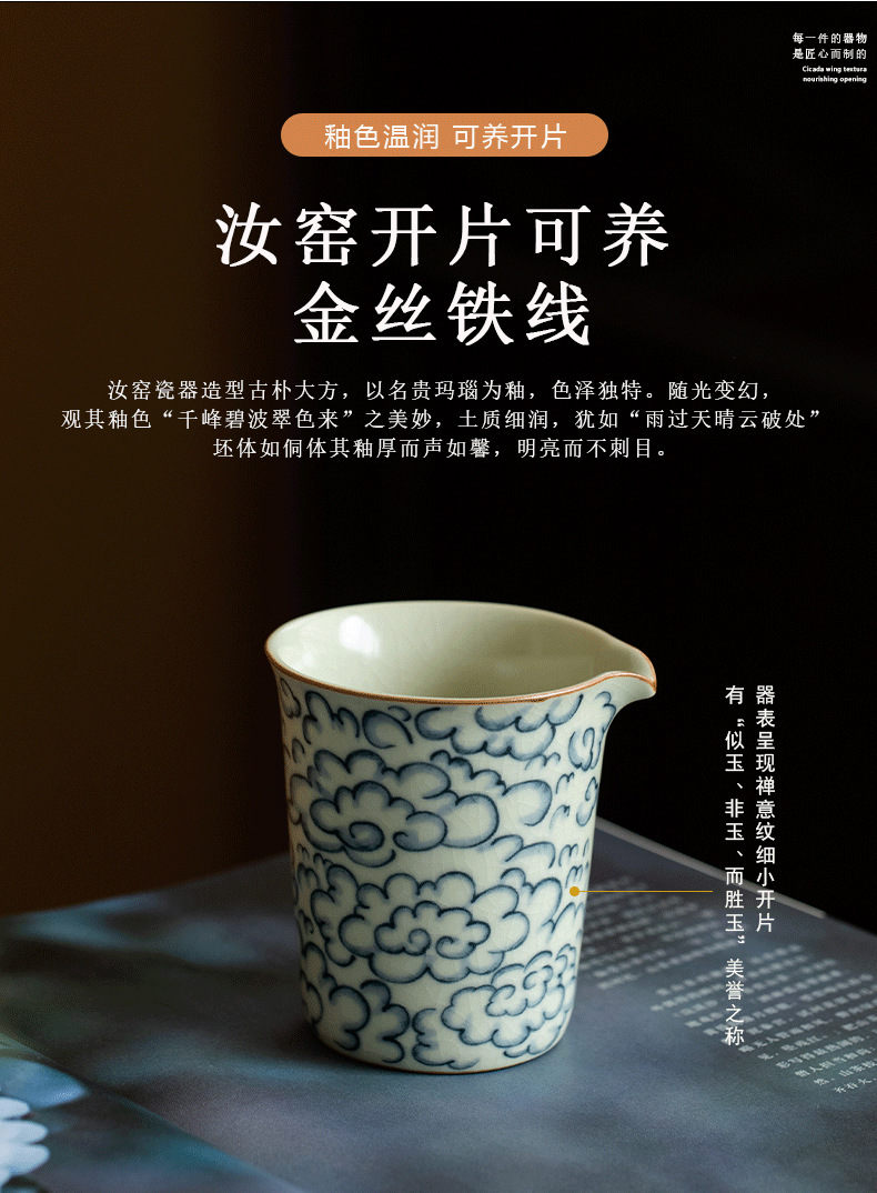 米黄汝窑公道杯功夫茶具祥云青花陶瓷单个茶海办公家用分茶器匀杯 English | 投诉