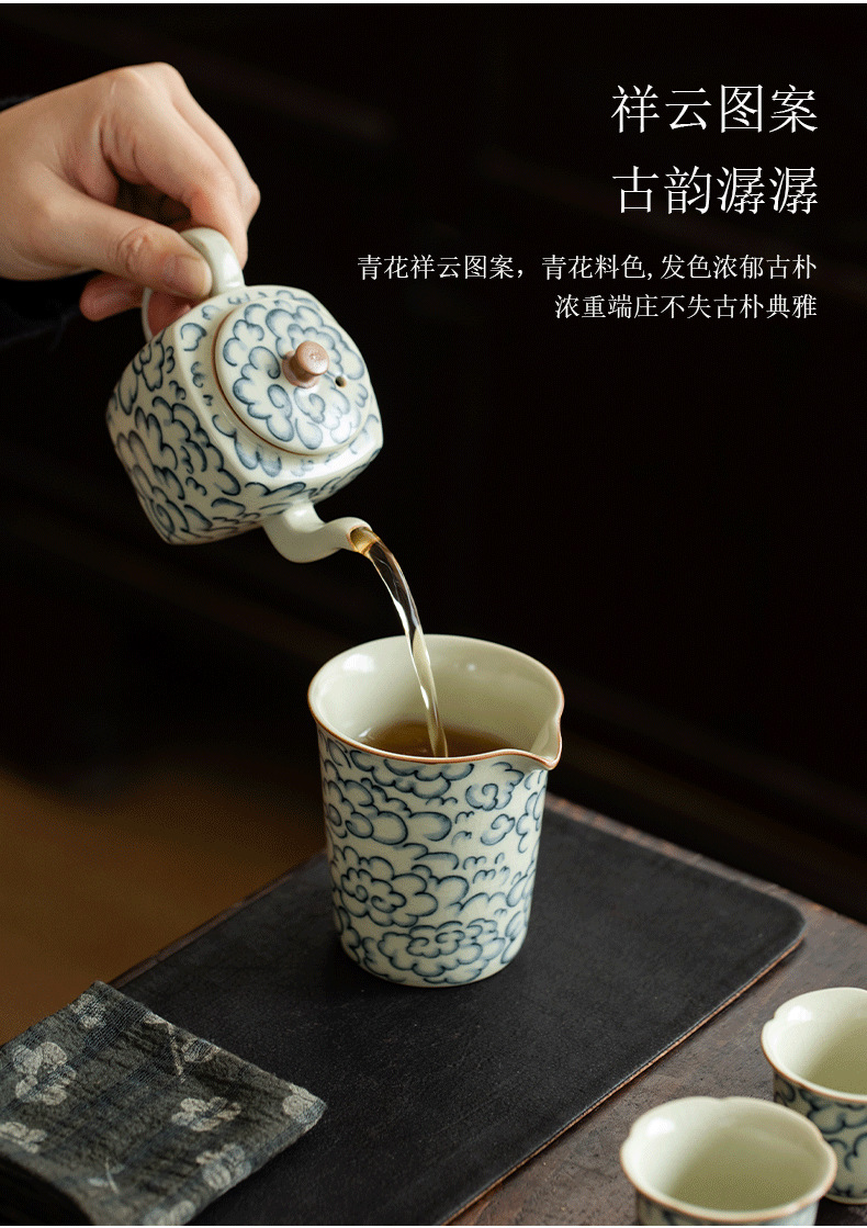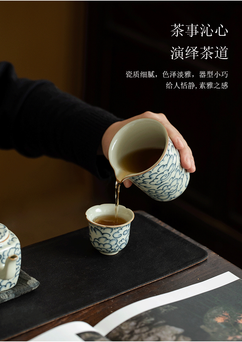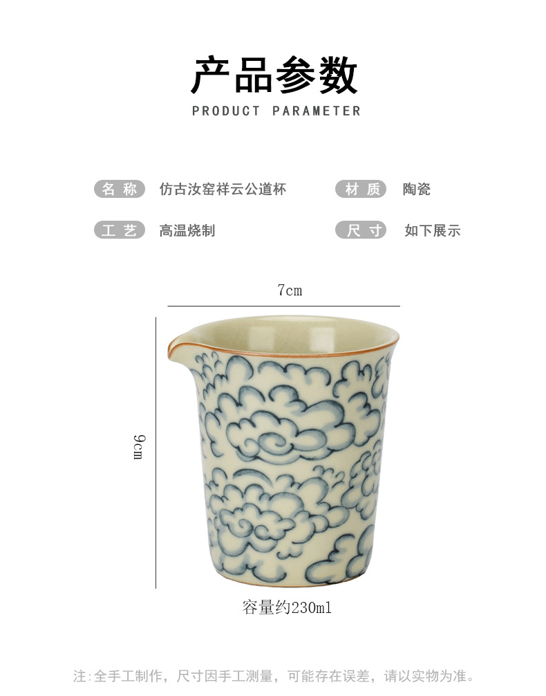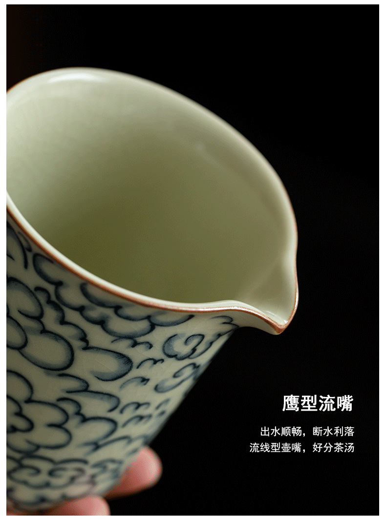 米黄汝窑公道杯功夫茶具祥云青花陶瓷单个茶海办公家用分茶器匀杯 English | 投诉