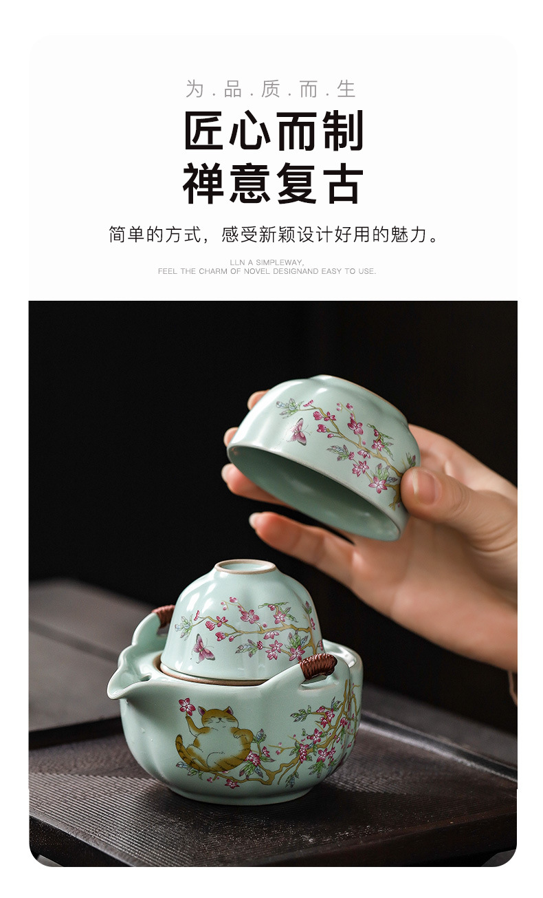 便携式汝窑旅行茶具小套装户外手抓泡茶壶茶杯个人专用露营快客杯 English | 投诉