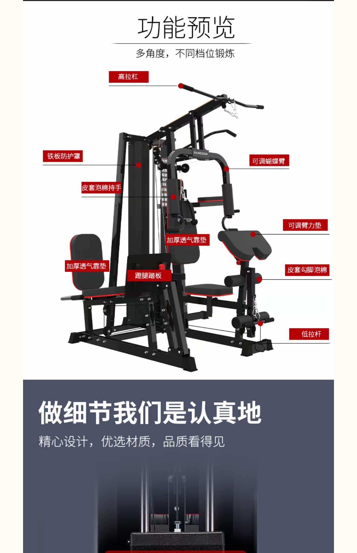 悍德森HS6170三人站综合训练器(蹬腿、单杠、双杠结构) English | 投诉