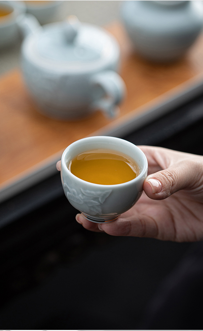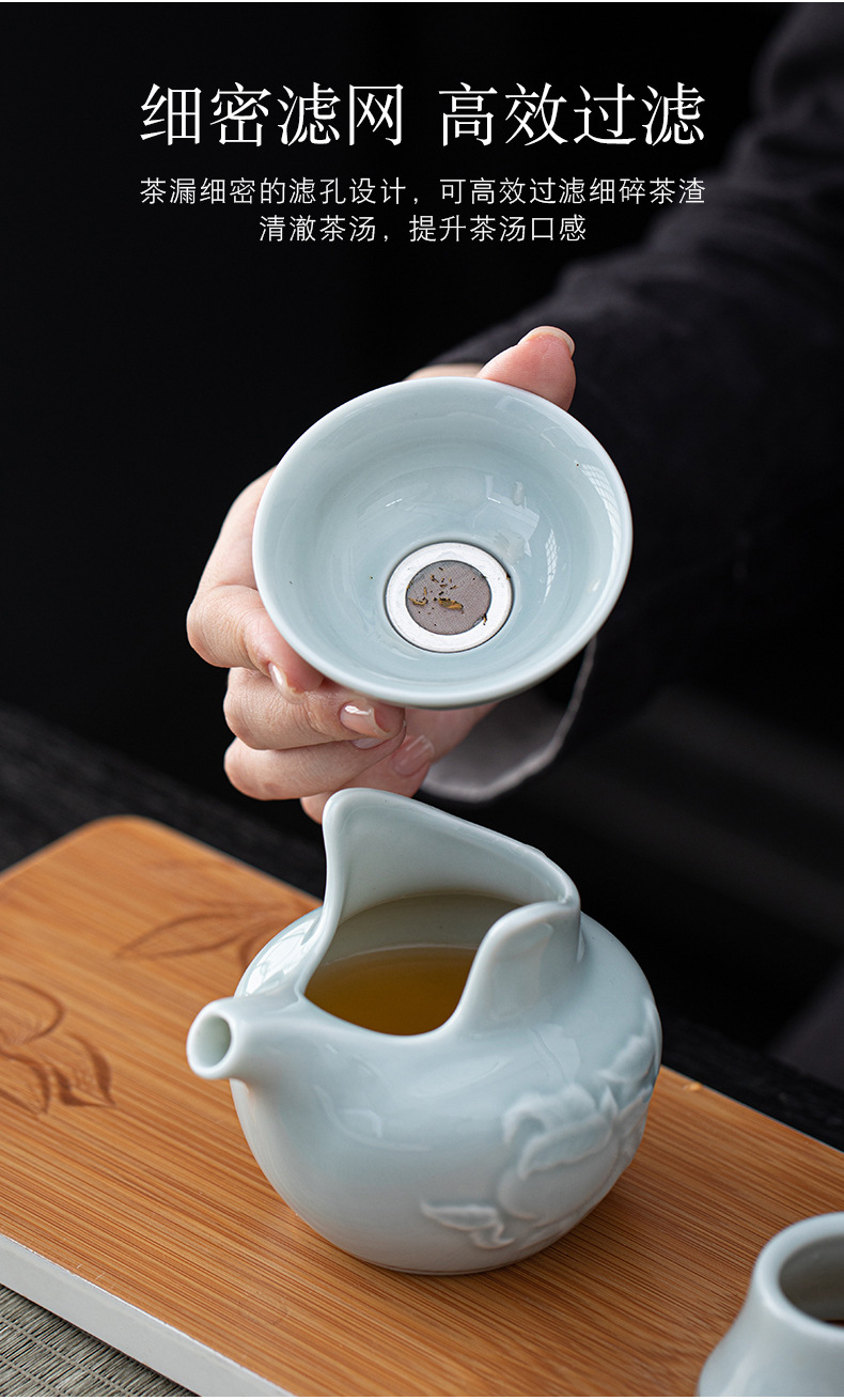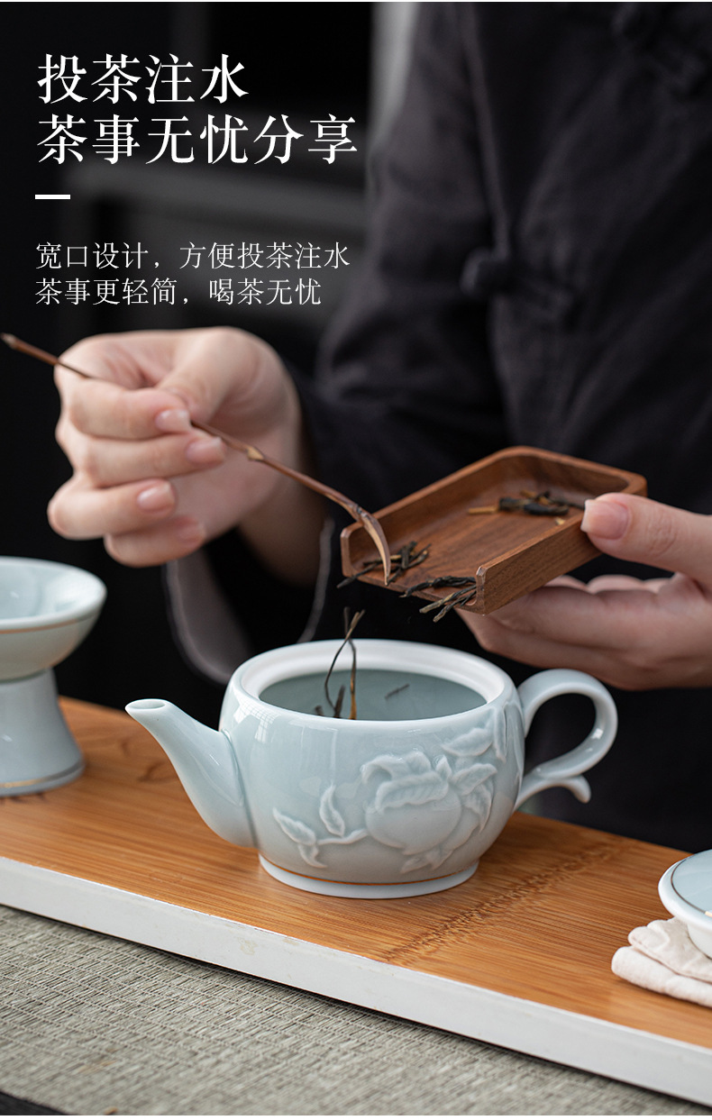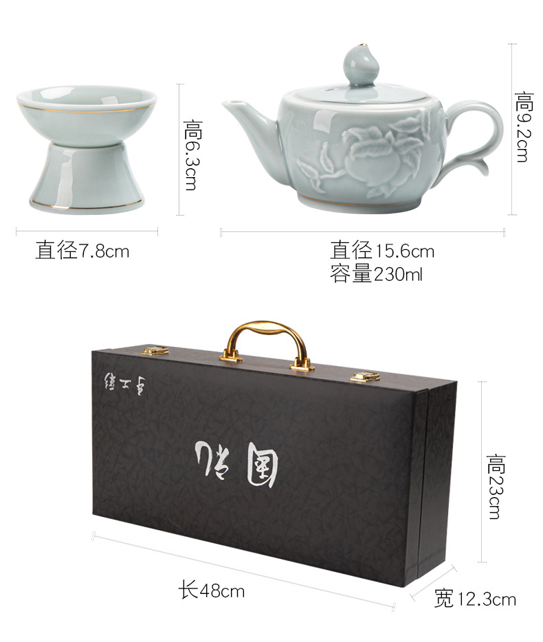 高档浮雕青瓷茶具茶壶套装家用陶瓷功夫茶具银行保险商务礼品logo English | 投诉