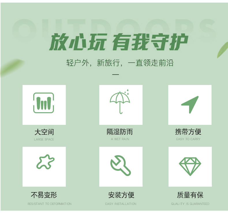 | 送配件:8个地钉+8个防风绳+手提袋+锤子【隔湿防雨,携带方便】 | ¥13020 | 26797件可售 |