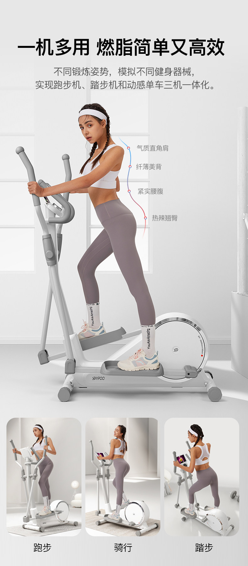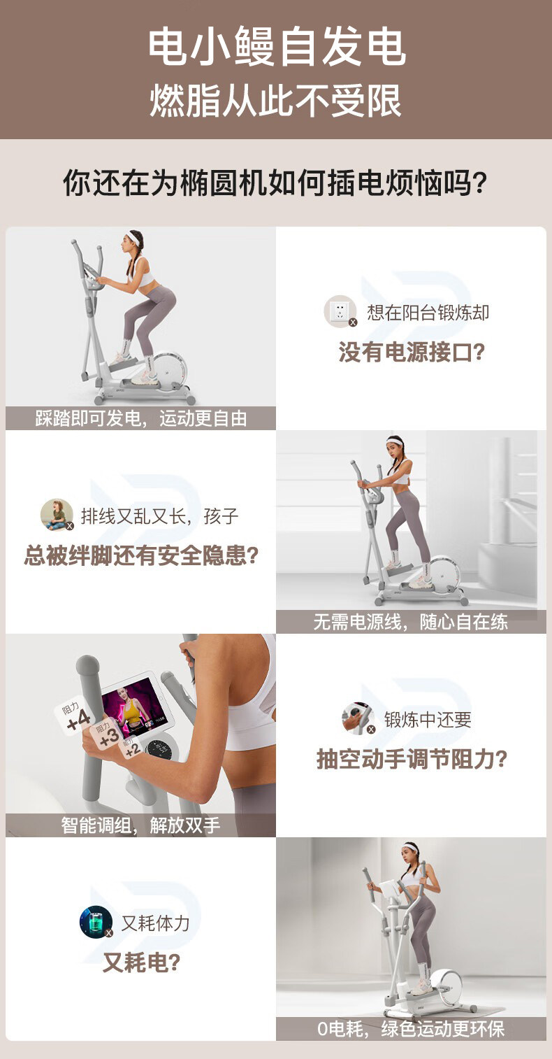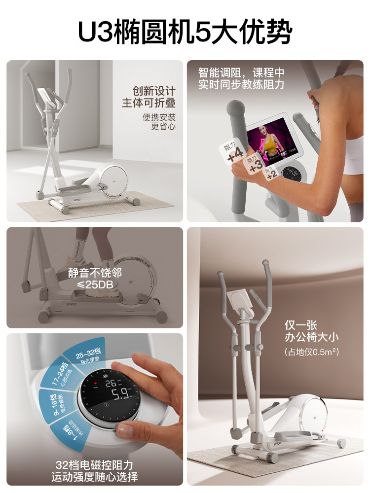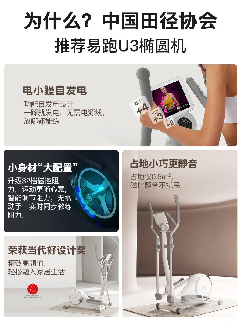 YPOO易跑玉兔U3自发电椭圆机家用健身太空漫步仪室内小型超静音
