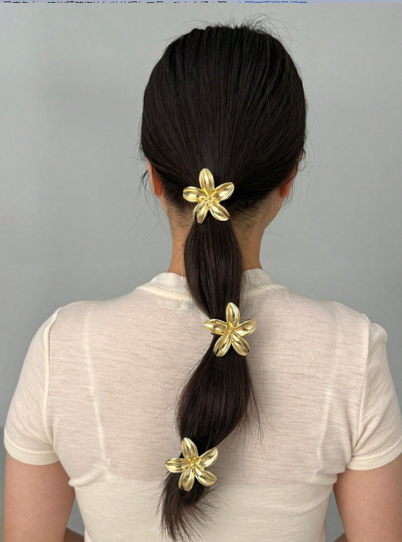 跨境欧美金色紫荆花大号发圈发绳发饰盘发头绳头饰发饰