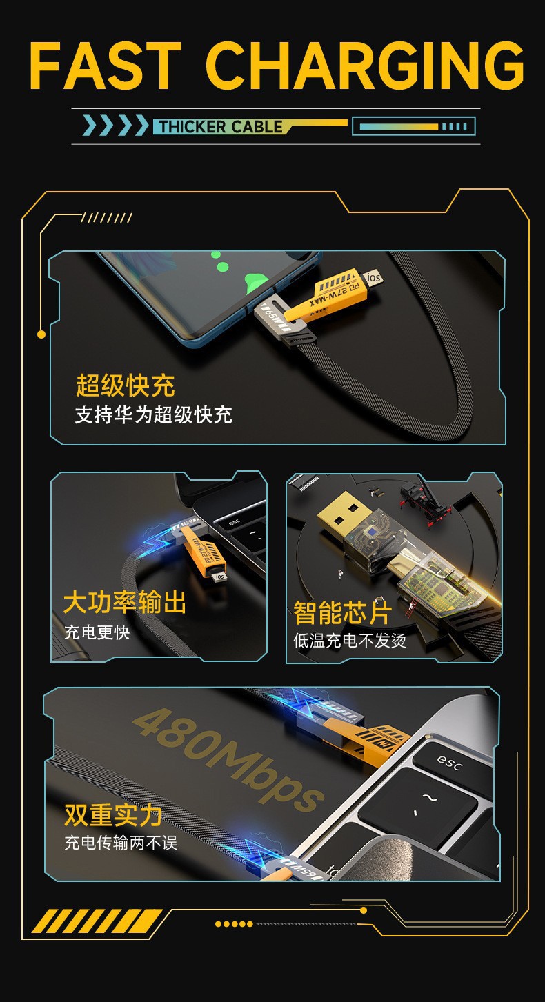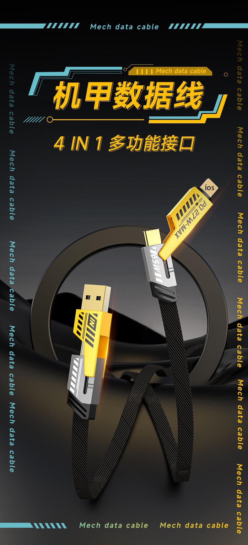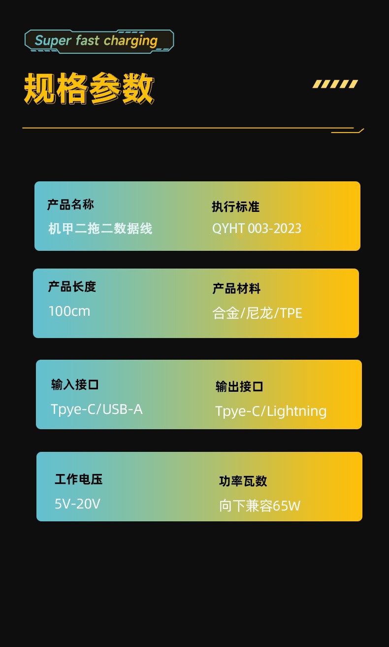 【产品名称】:机甲二拖二数据线
