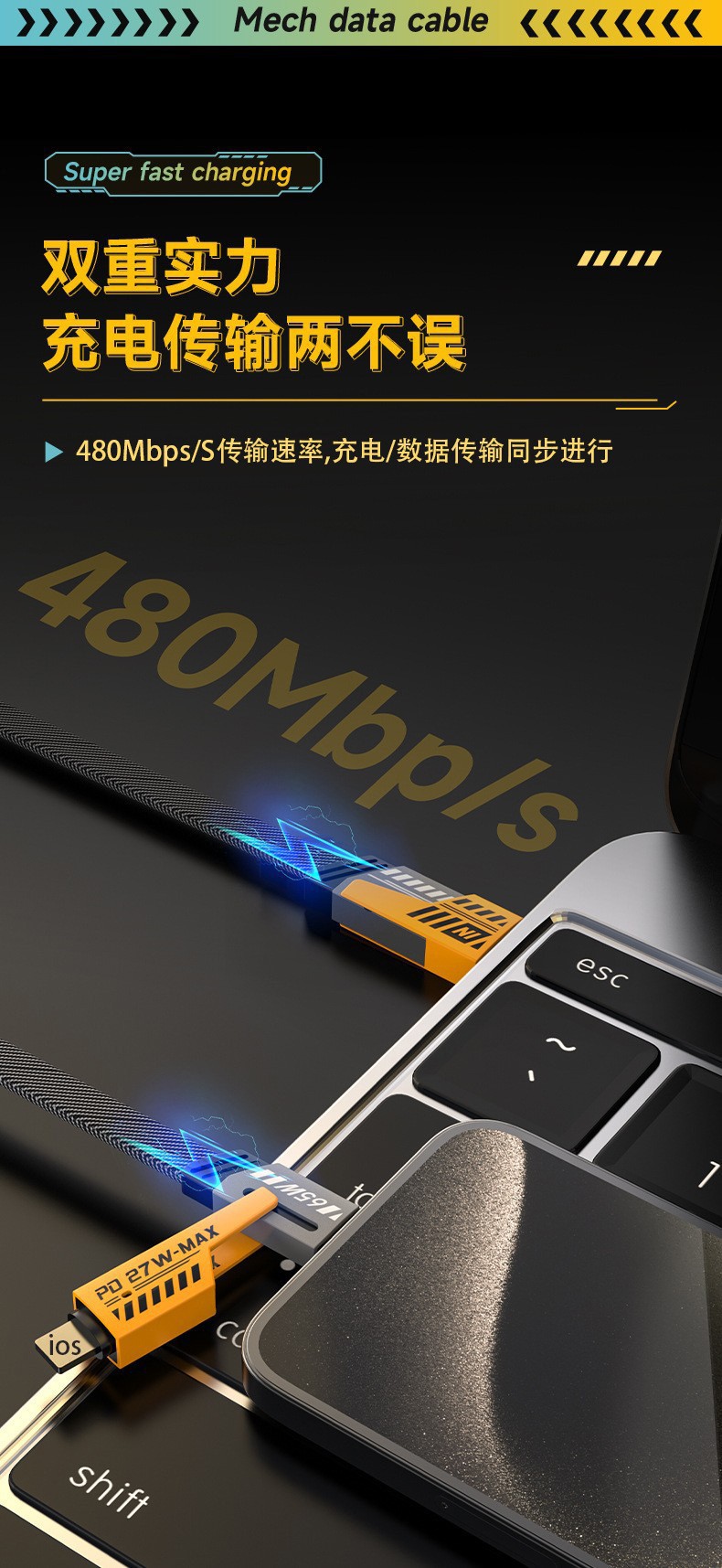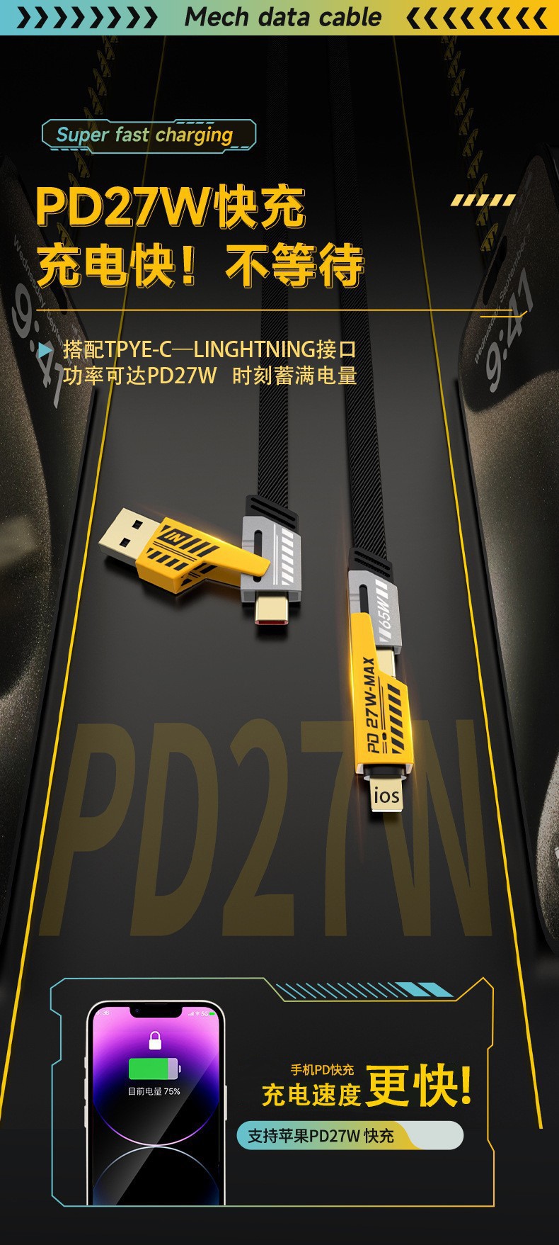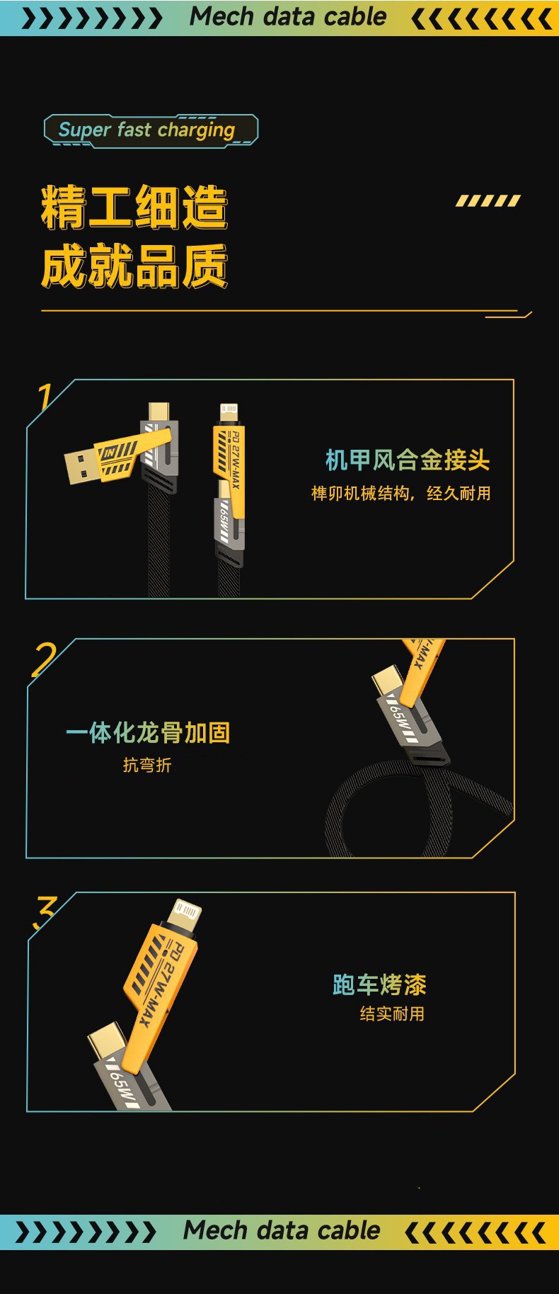 【产品名称】:机甲二拖二数据线