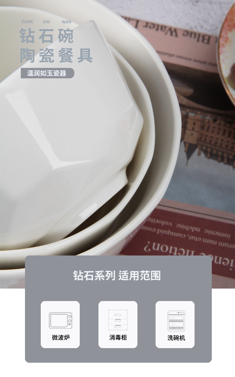 厂家直销陶瓷碗米饭碗家用中式钻石汤碗面碗创意沙拉护边碗 English | 投诉