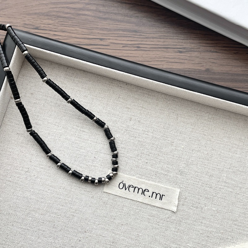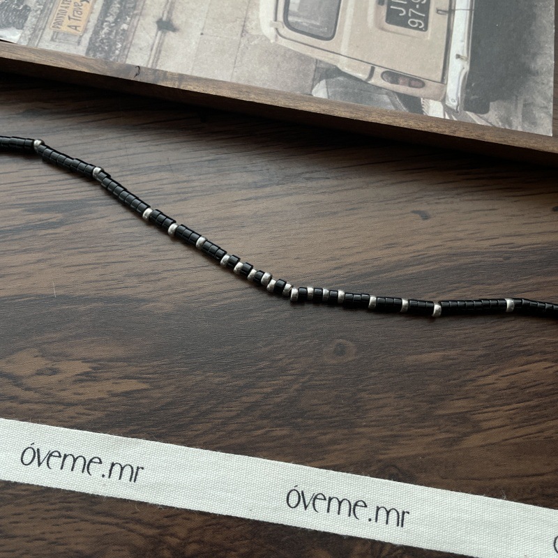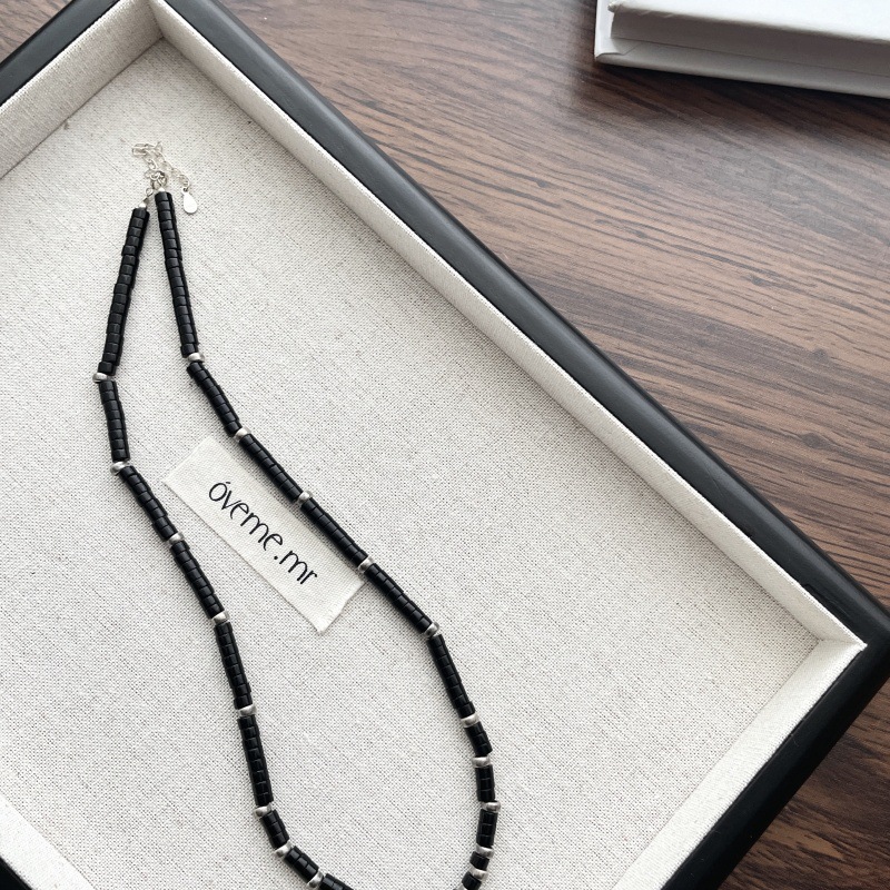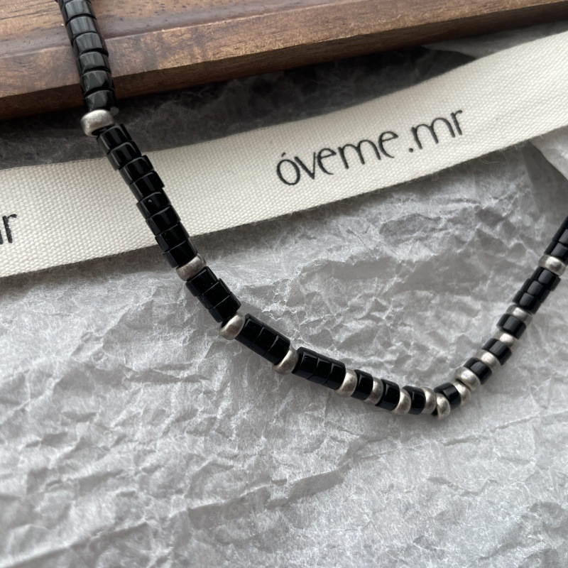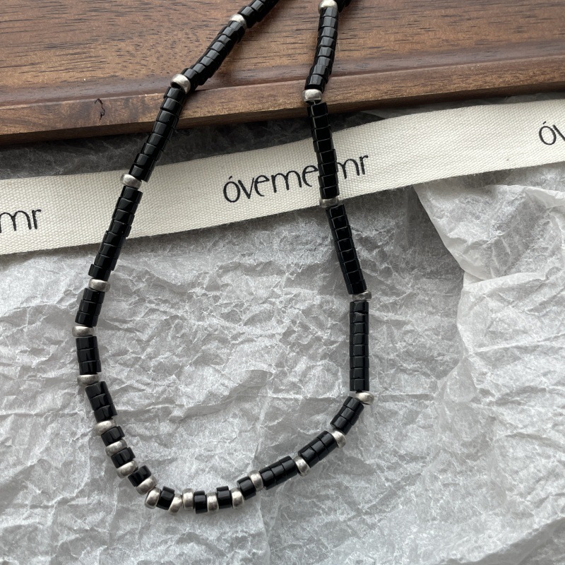 先泰S925银天然黑玛瑙方管泰银项链手工串珠小众原创设计颈链批发