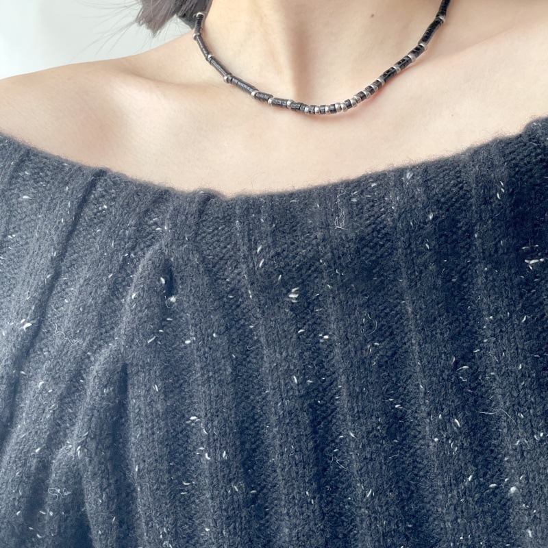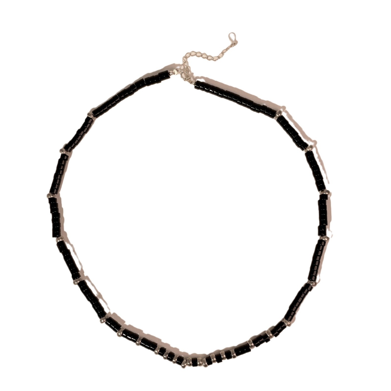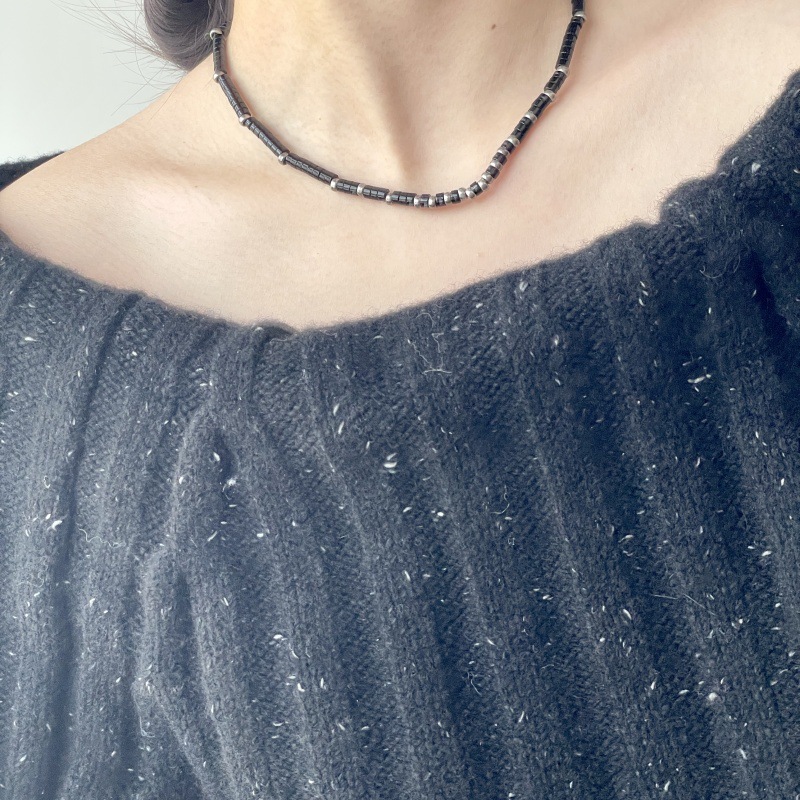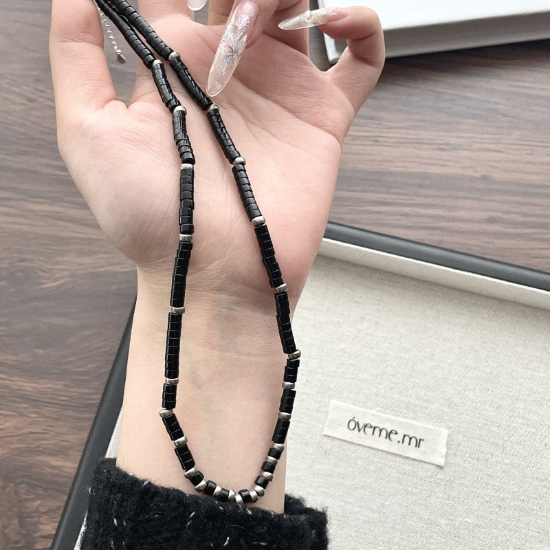先泰S925银天然黑玛瑙方管泰银项链手工串珠小众原创设计颈链批发