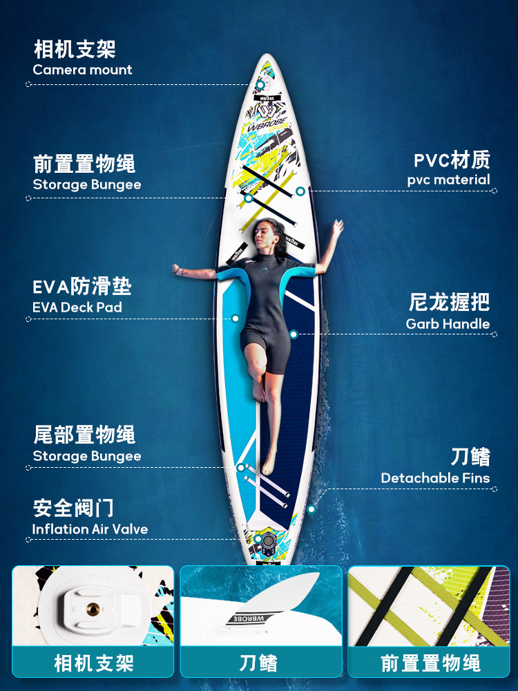 产品类别: 冲浪板 材质: PVC 货号: BNW24008 适用人群: 通用 品牌: WBROBE 有可授权的自有品牌: 是 是否跨境出口专供货源: 是 专利类型: 无 外贸出口认证: / 质检报告编号: / 重量: 0.5 kg/个