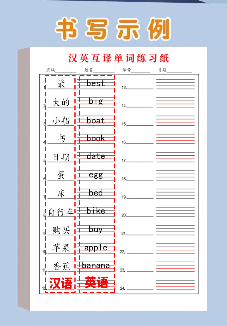 英语听写纸小学生初中英语本单词默写本汉英互译练习纸三四五六年 English | 投诉