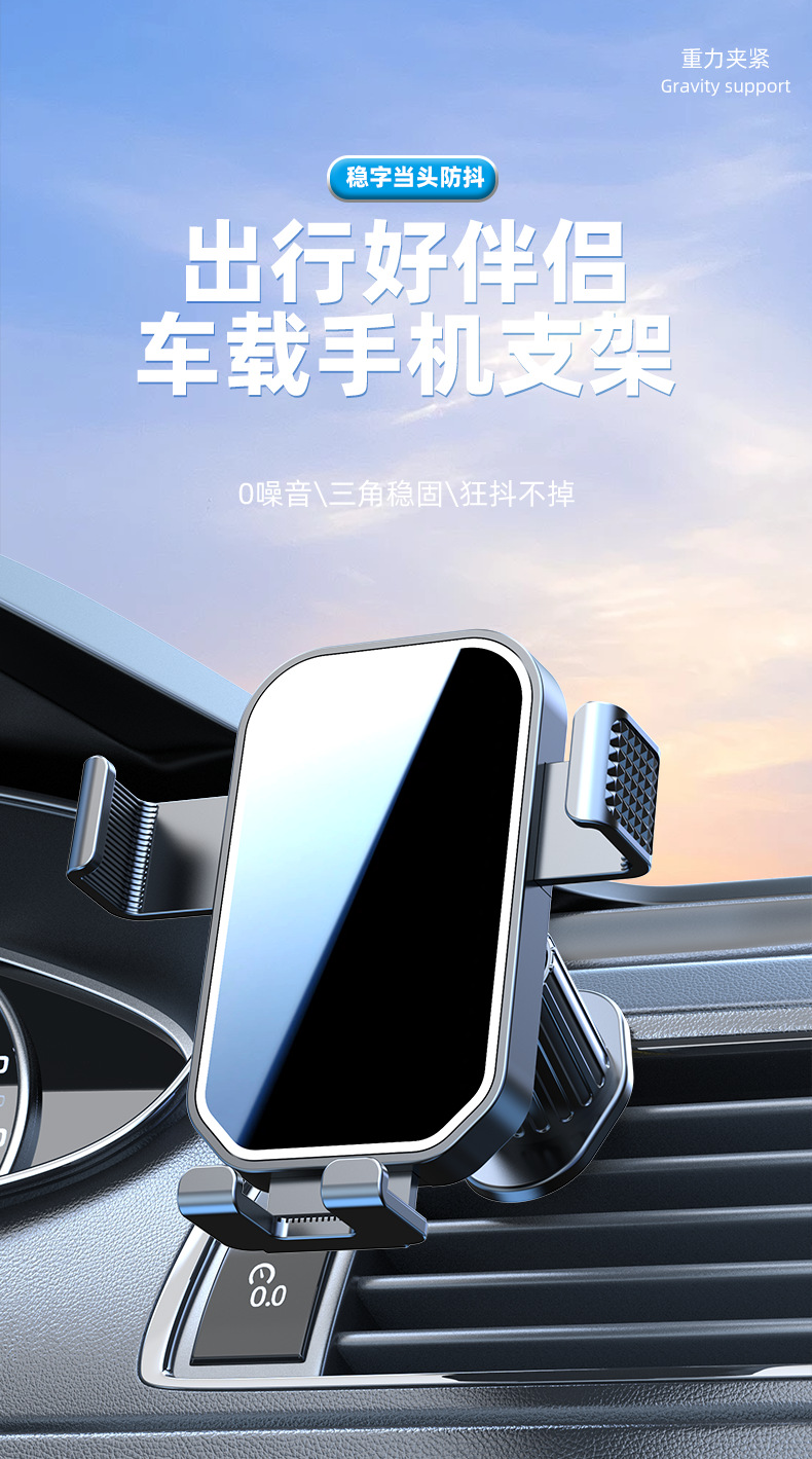 出风口手机架车载手机支架汽车导航通用重力式三角自动夹紧手机架