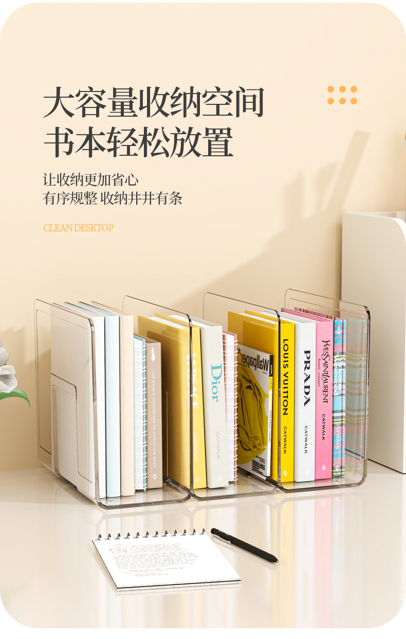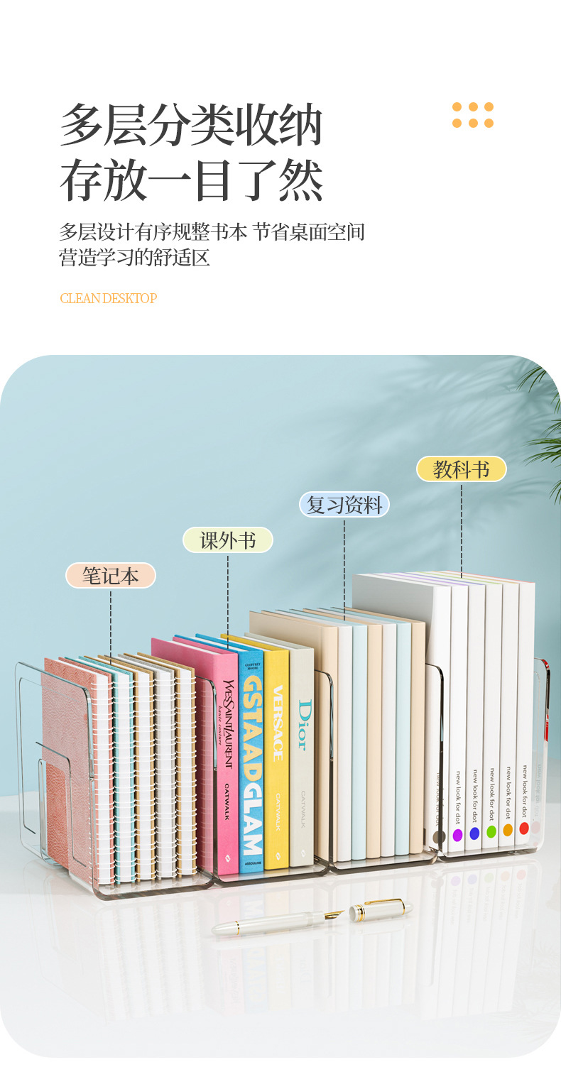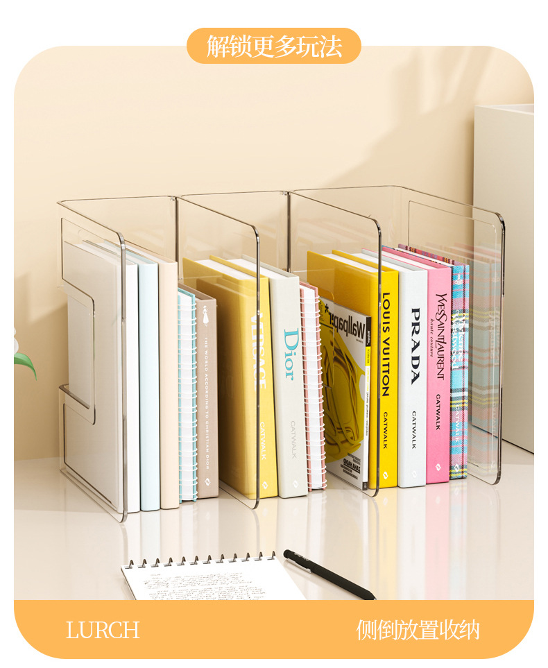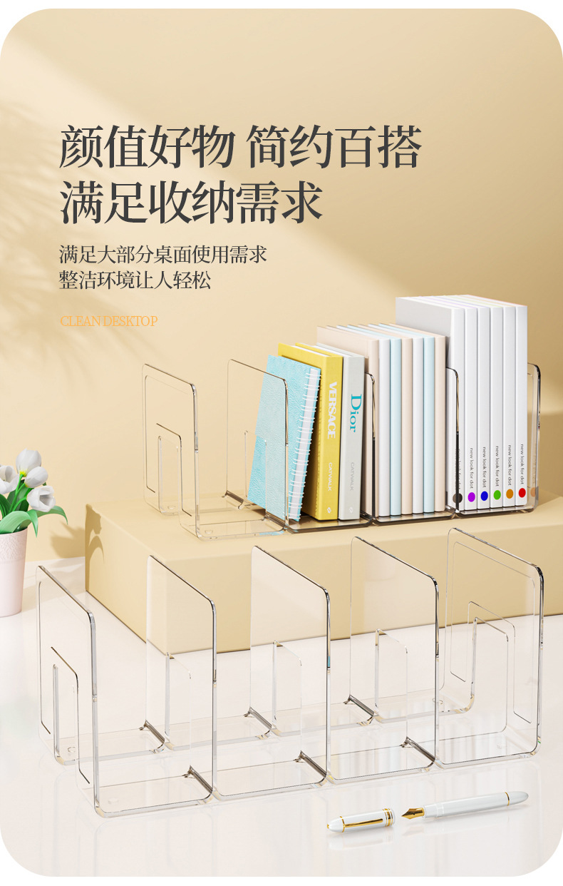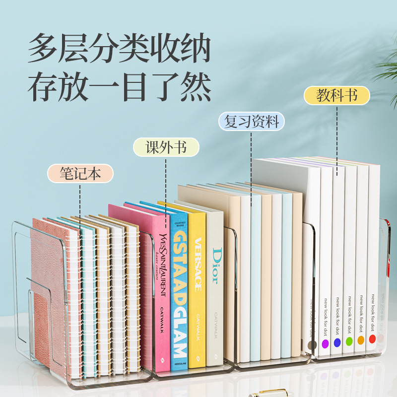 亚克力书立桌面塑料书立架透明书架挡板书夹书立架收纳书本展示架