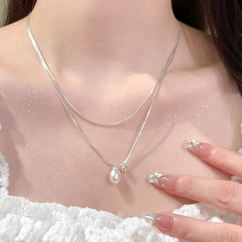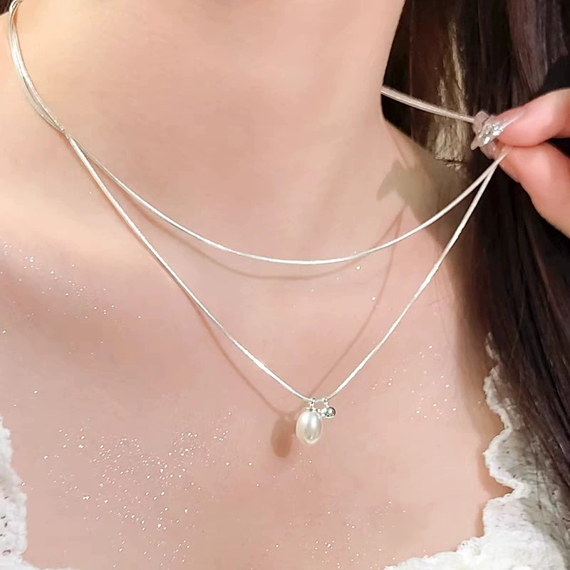 简约双层叠戴天然珍珠项链女ins冷淡风时尚个性锁骨链百搭高级感