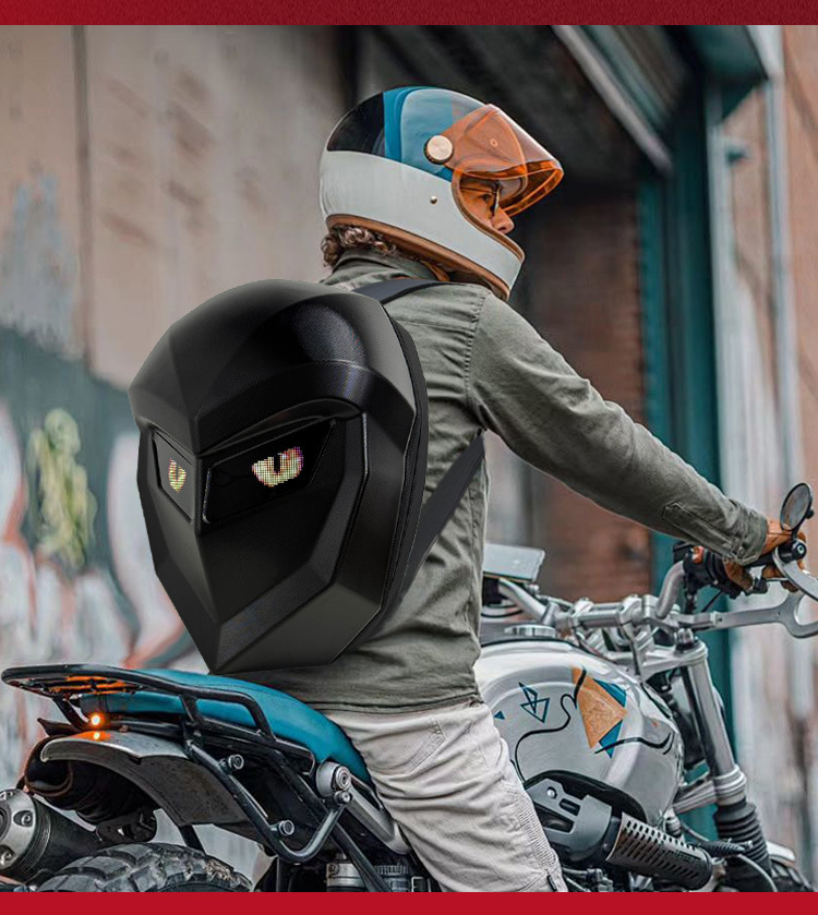 钢铁侠骑行摩托车背包LED机车双肩包男女硬壳防水全盔骑士头盔包 English | 投诉