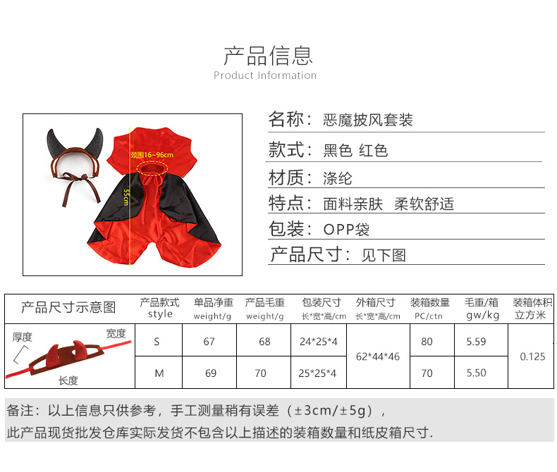 跨境新款宠物万圣节系列宠物恶魔牛角披风搞怪服饰宠物变身装服饰 English | 投诉