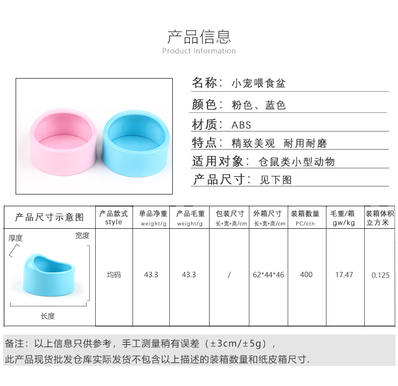 现货塑料仓鼠喂食碗金丝熊防打翻食盆易清洗鹦鹉小宠喂食器用品 English | 投诉