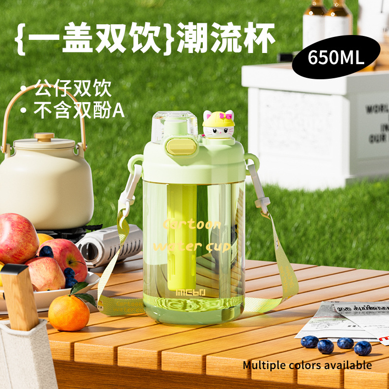 高颜值大容量一盖双饮公仔吨吨杯儿童吸管杯可爱塑料茶水分离水杯 English | 投诉