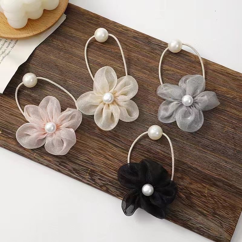 新款珍珠花朵发绳皮筋甜美低马尾丸子头扎头发圈半扎发头绳饰品