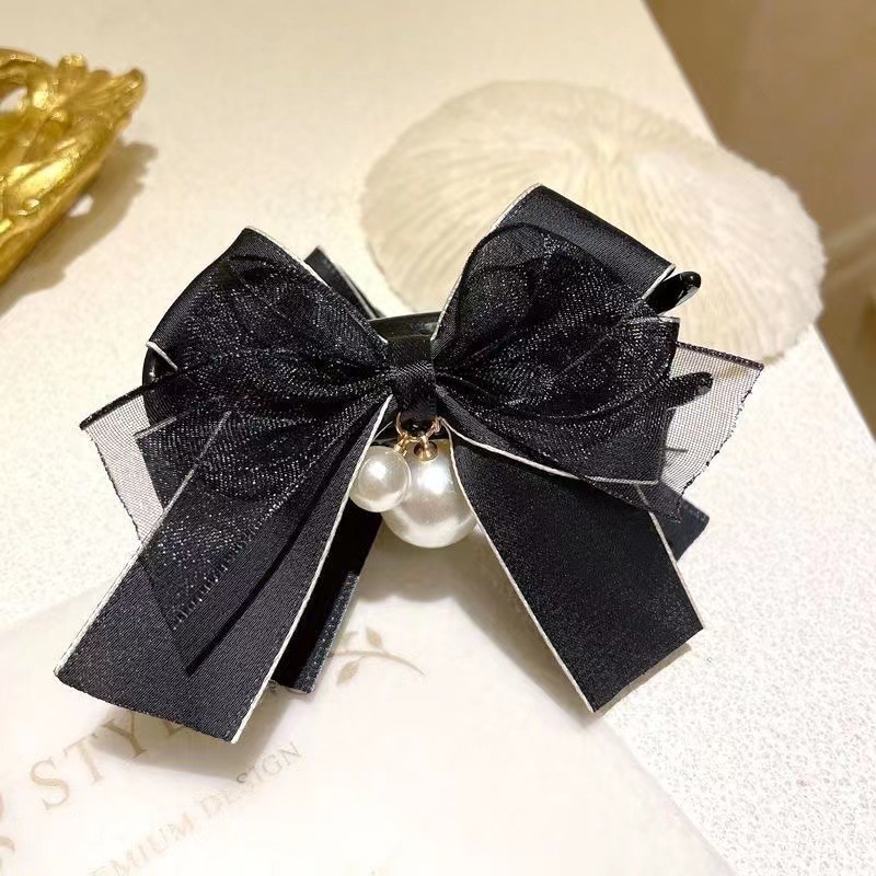 2024新款网红蝴蝶结珍珠丸子头发夹女气质高级感发卡抓夹