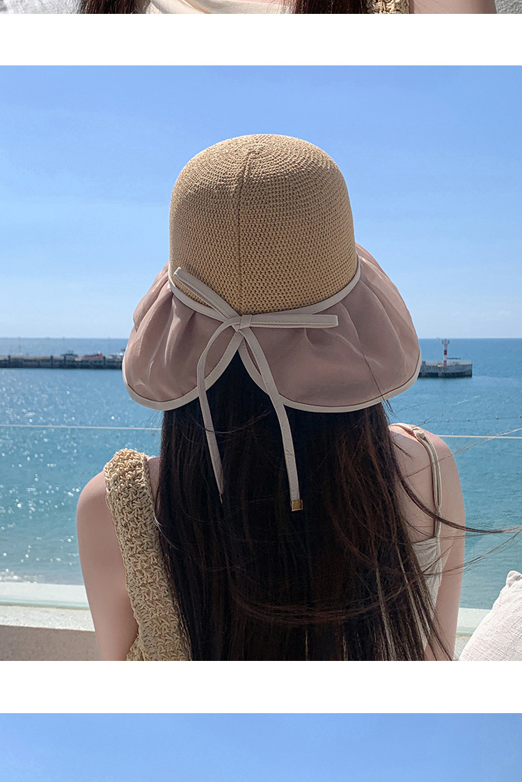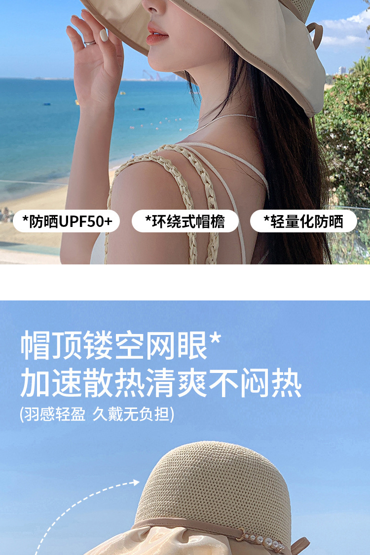 帽子女珍珠网纱大沿夏季防晒遮阳帽海边度假渔夫帽针织蝴蝶结太帽 投诉