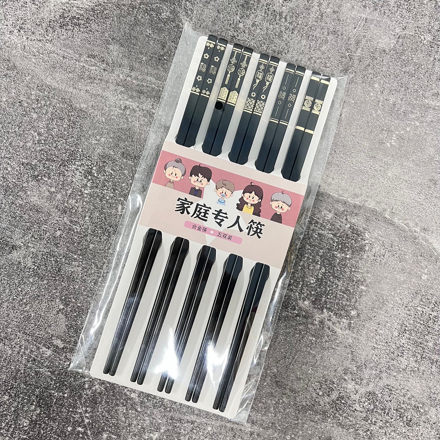 筷专家源头工厂五福临门合金筷子高颜值防滑防霉易清洗分餐筷