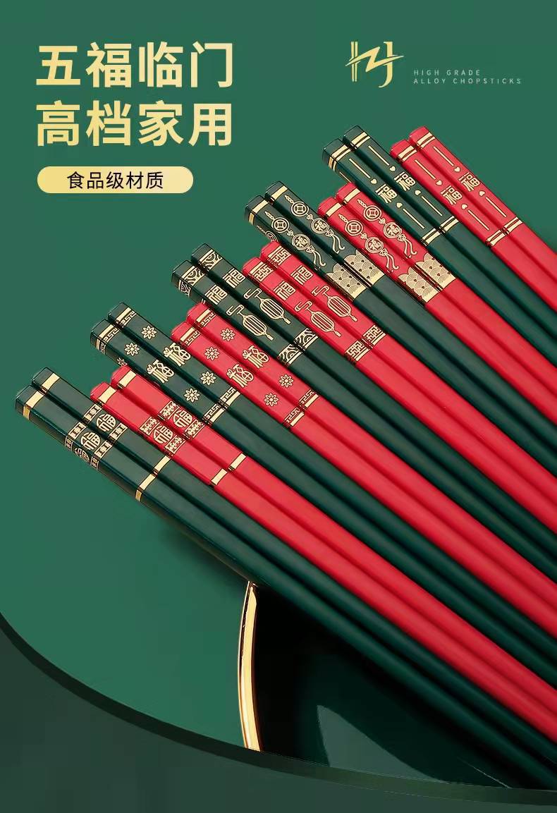 筷专家源头工厂五福临门合金筷子高颜值防滑防霉易清洗分餐筷 English | 投诉