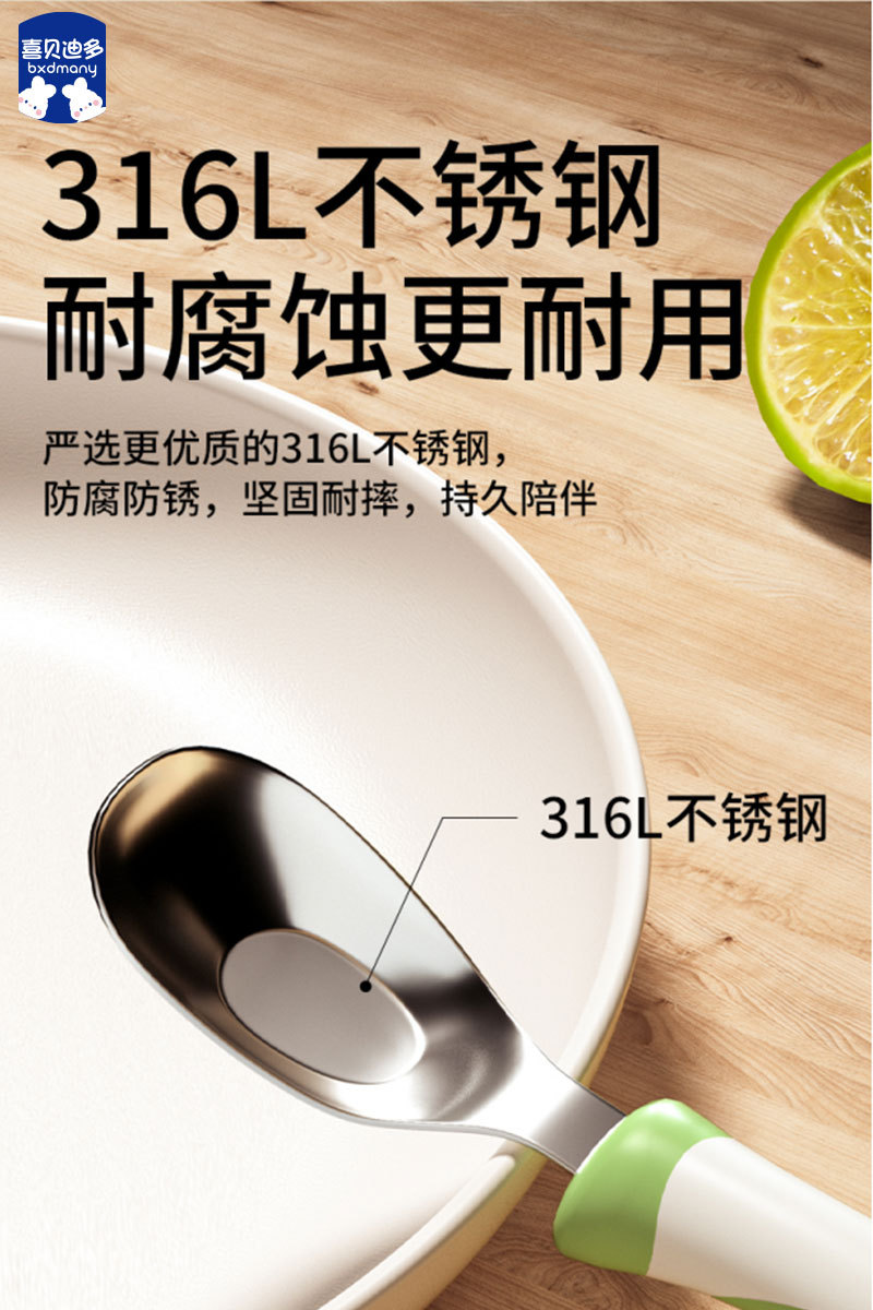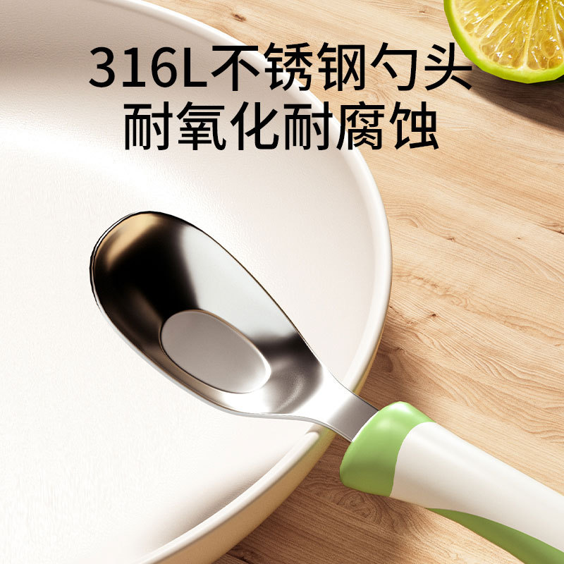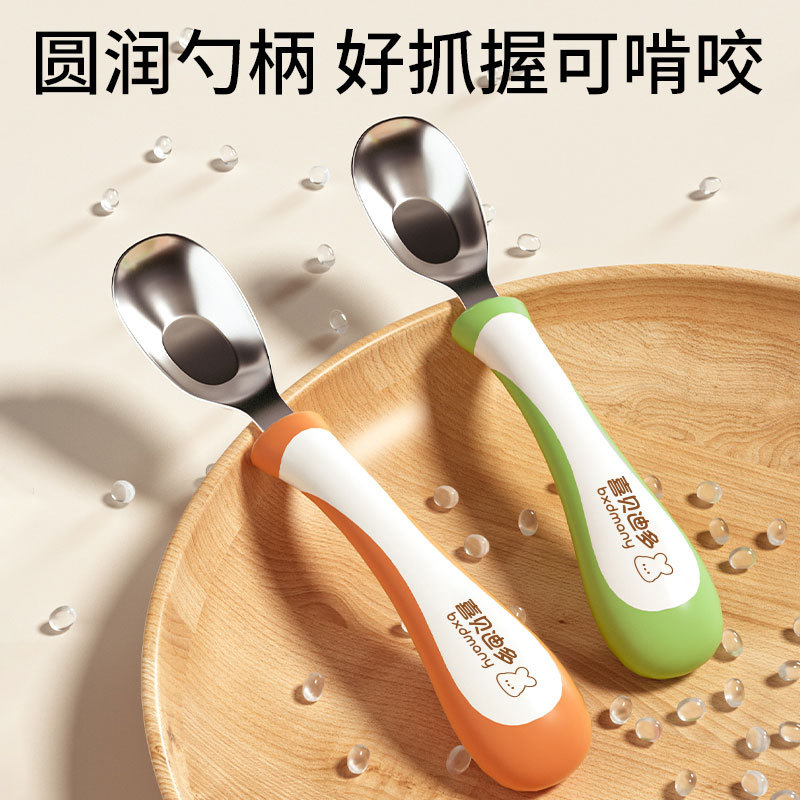 儿童元宝勺子婴儿316L不锈钢儿童宝宝自主进食吃饭调羹长柄汤勺 English | 投诉
