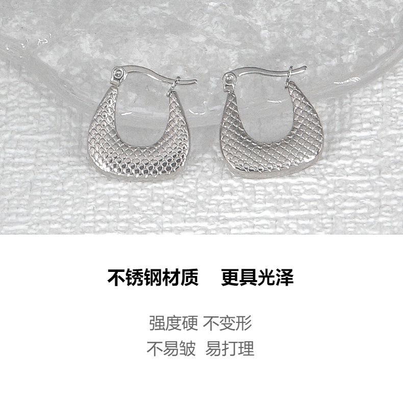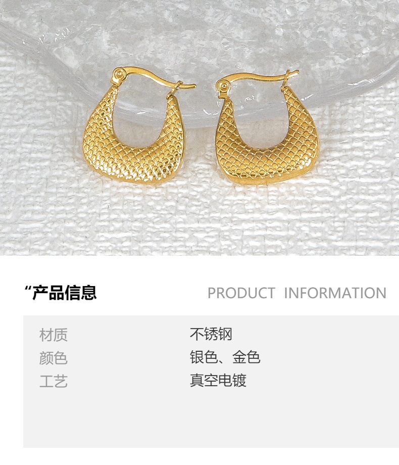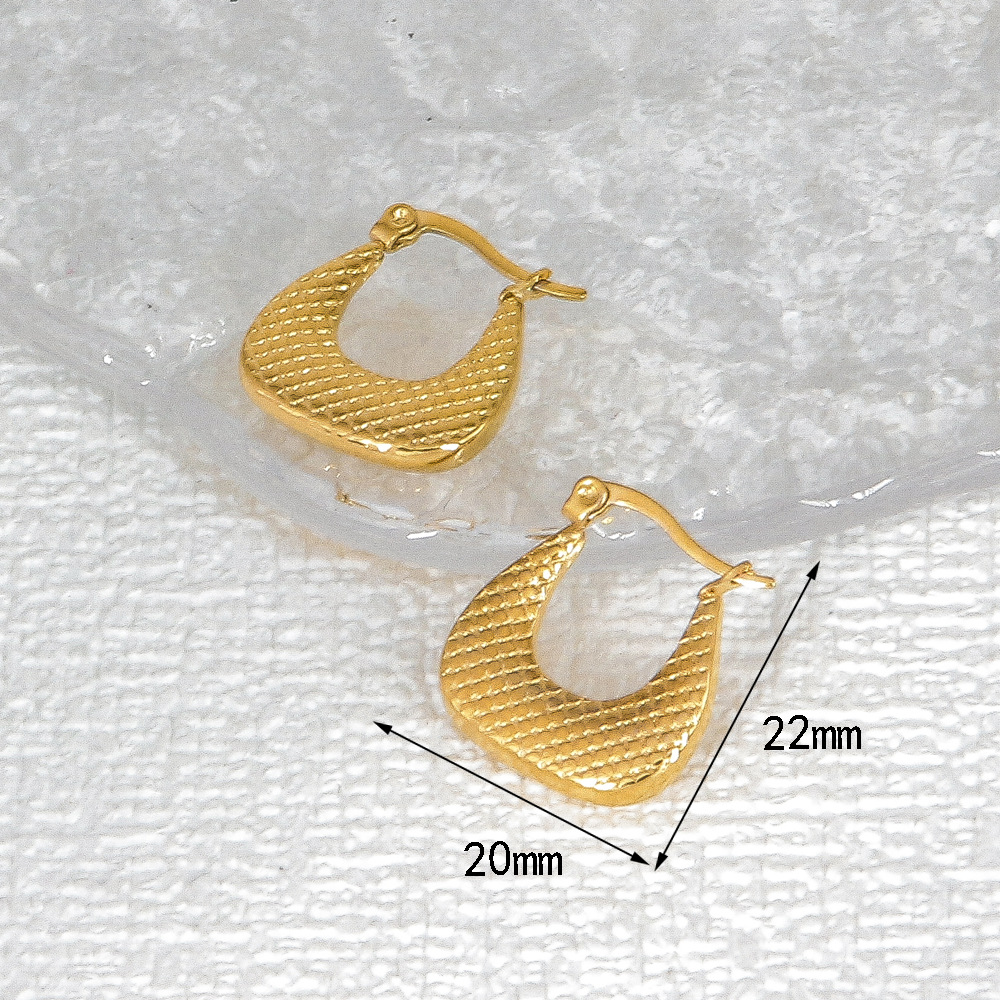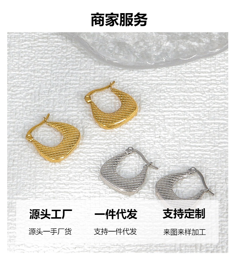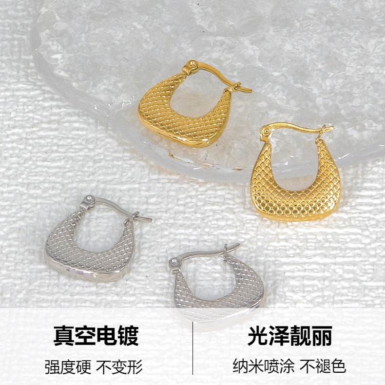 跨境耳饰金属高级感钛钢耳环女镀金竹节梯形压纹欧美轻奢精致耳钉 投诉