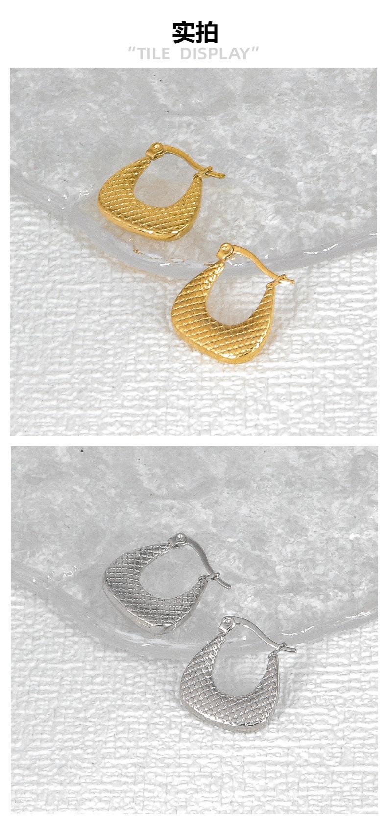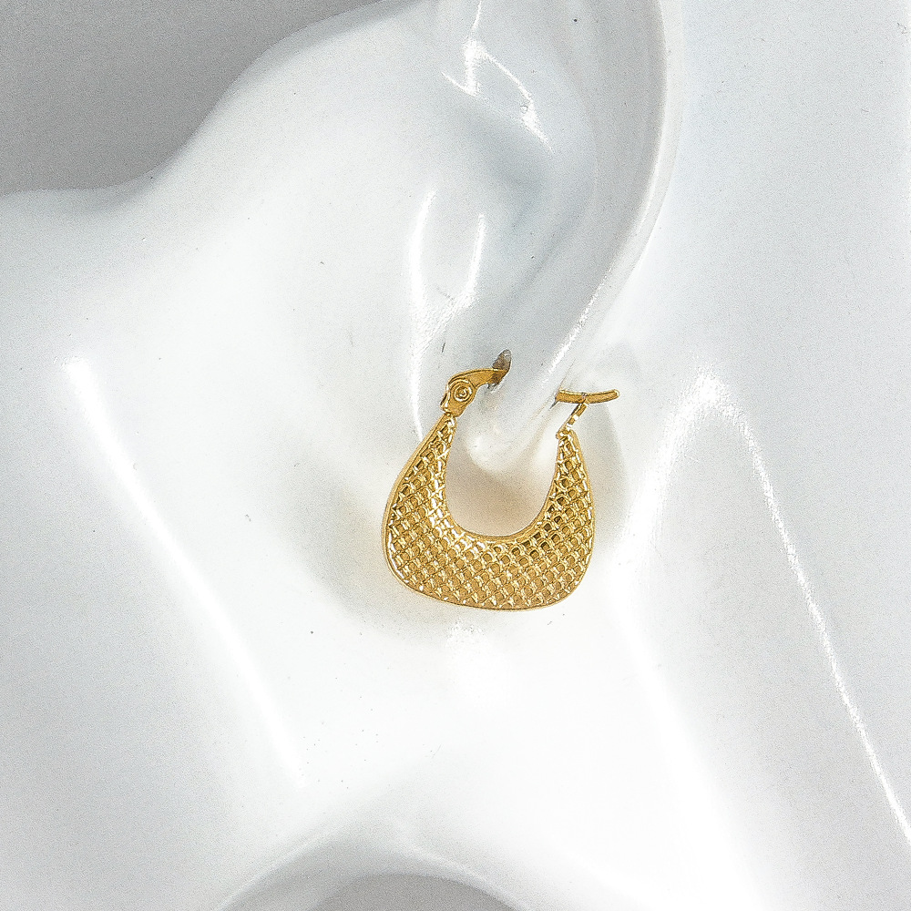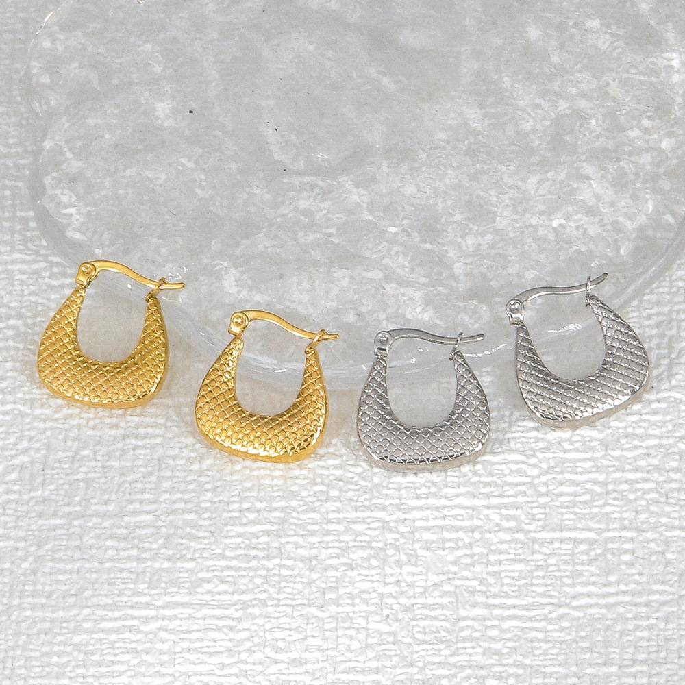 跨境耳饰金属高级感钛钢耳环女镀金竹节梯形压纹欧美轻奢精致耳钉 投诉