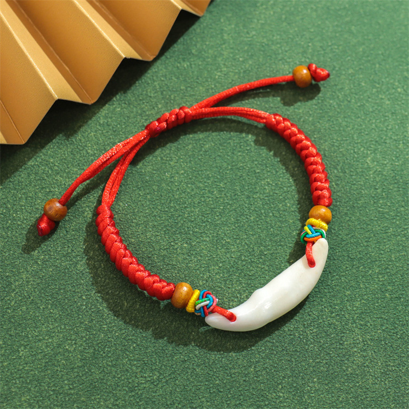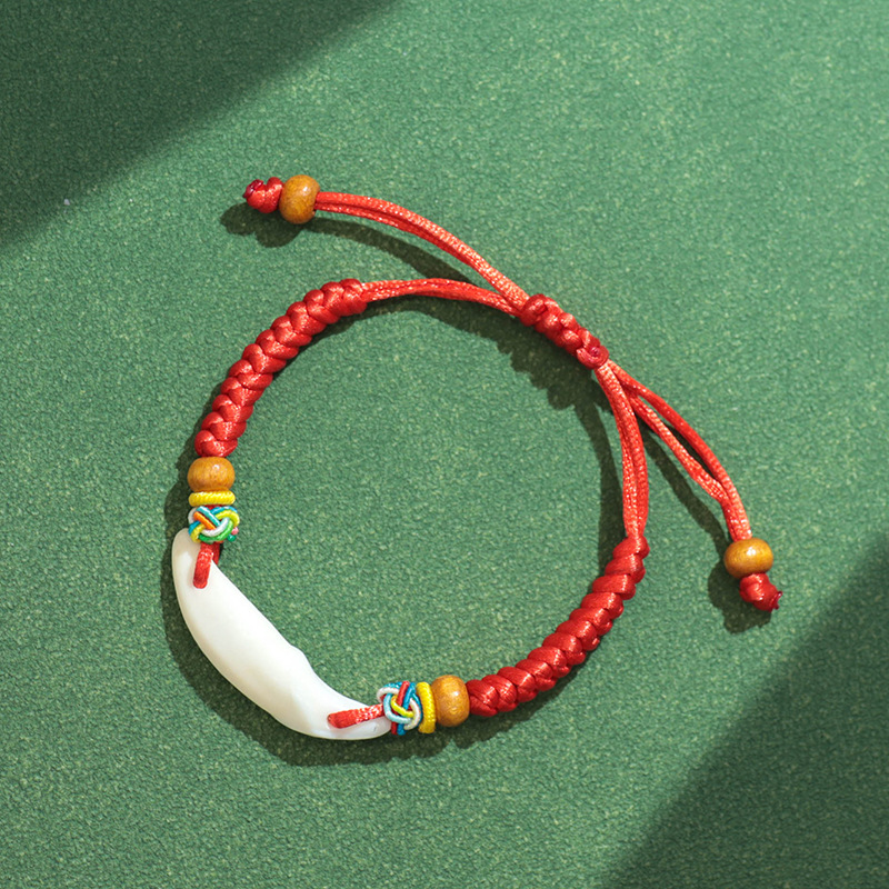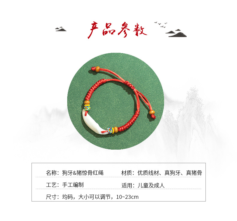 儿童宝宝防惊吓猪惊骨红绳手链本命年手工编织婴儿安睡狗牙手绳 投诉