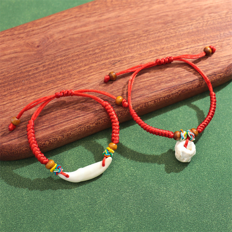 儿童宝宝防惊吓猪惊骨红绳手链本命年手工编织婴儿安睡狗牙手绳