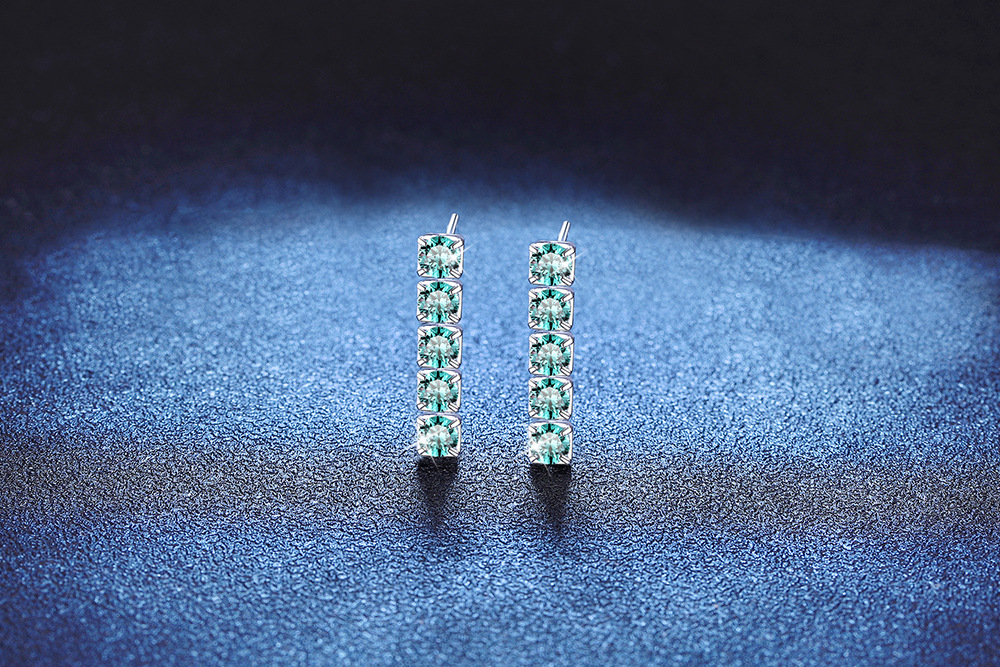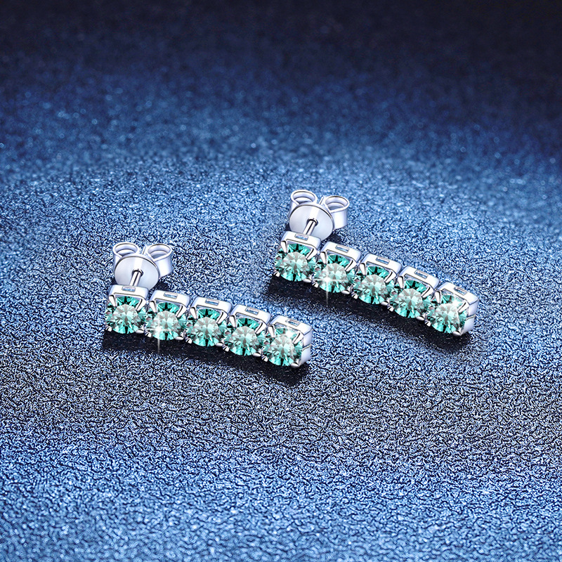 S925纯银耳钉蓝莫桑石耳钉 马尔代夫蓝绿色流苏3克拉莫桑石耳钉女