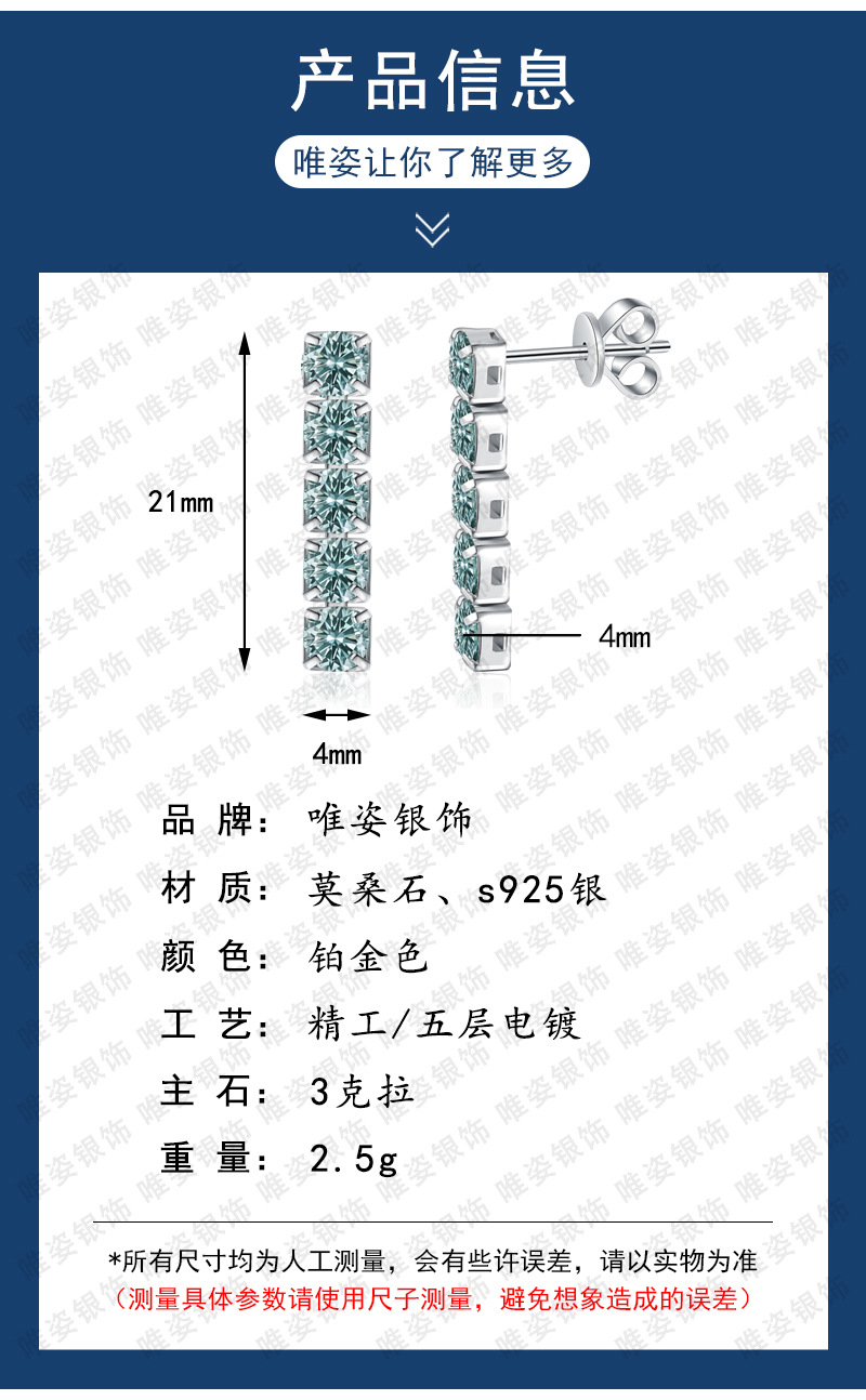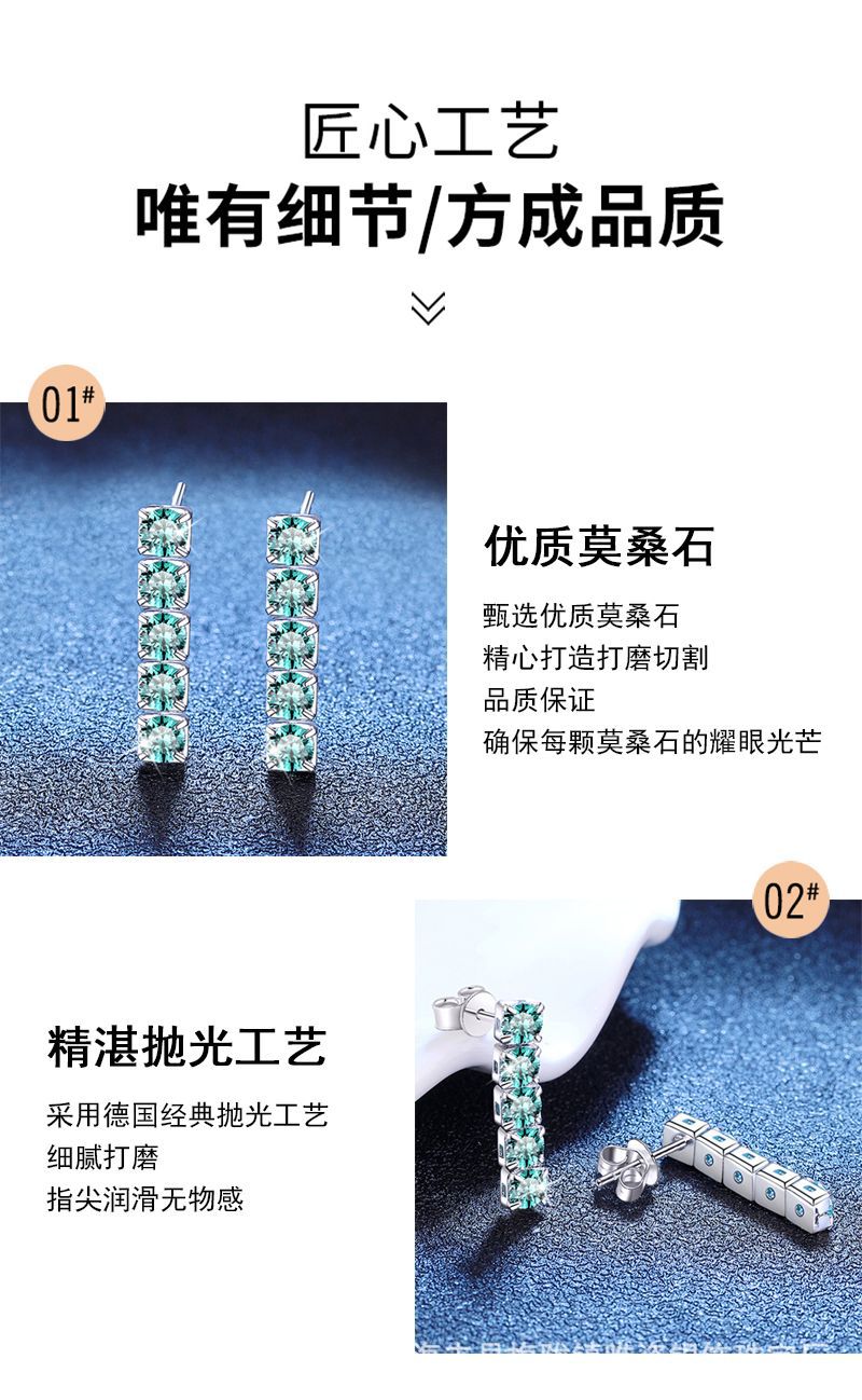 S925纯银耳钉蓝莫桑石耳钉 马尔代夫蓝绿色流苏3克拉莫桑石耳钉女 投诉