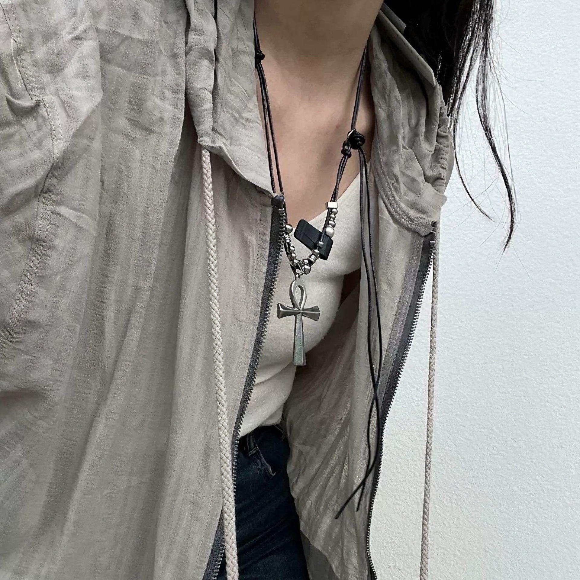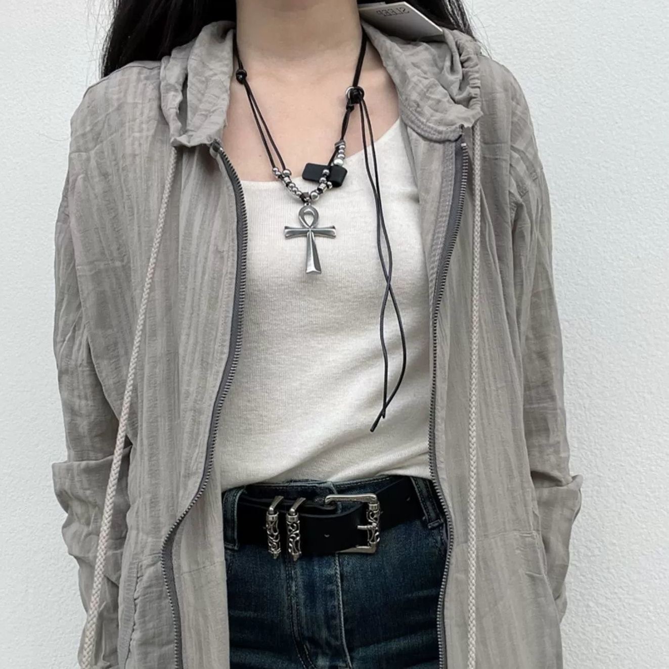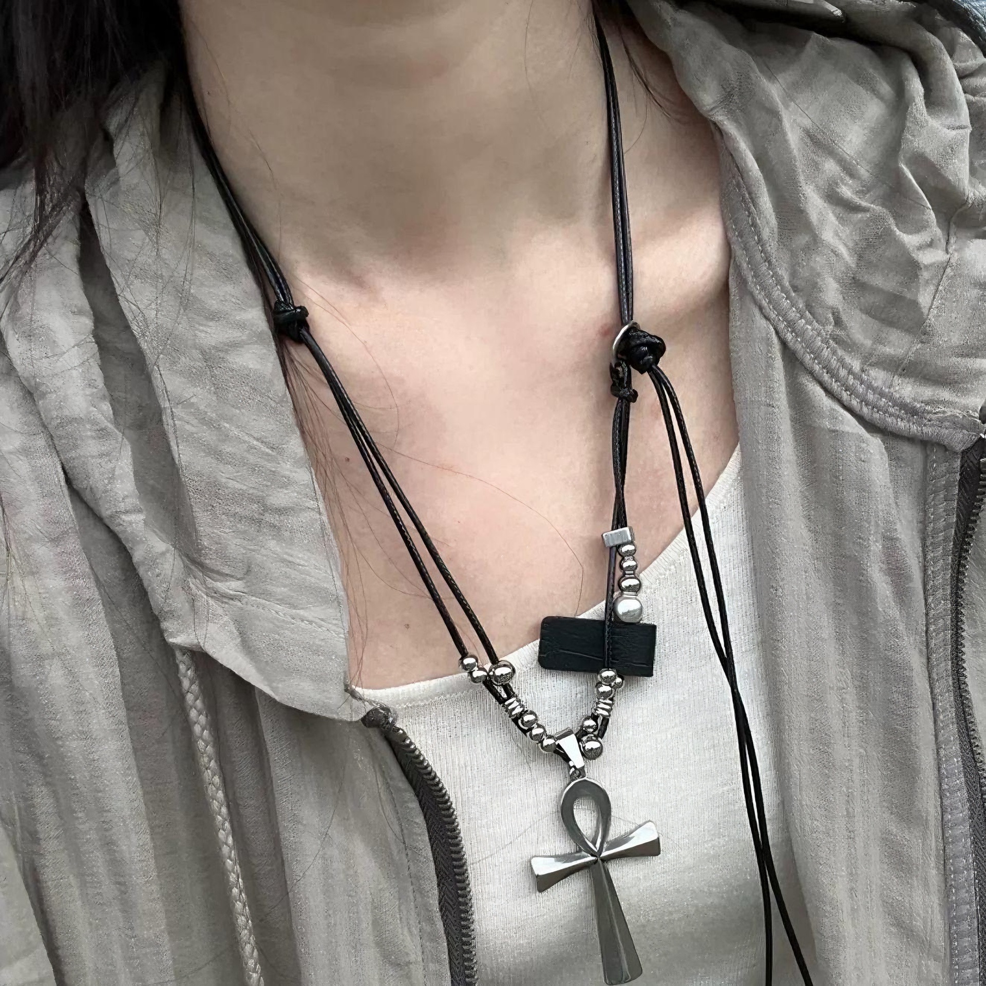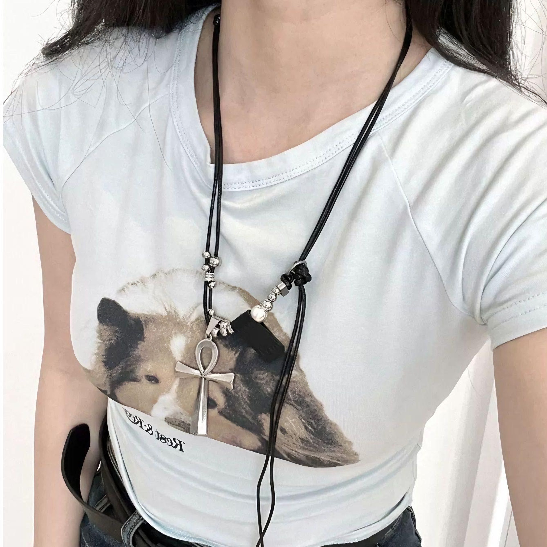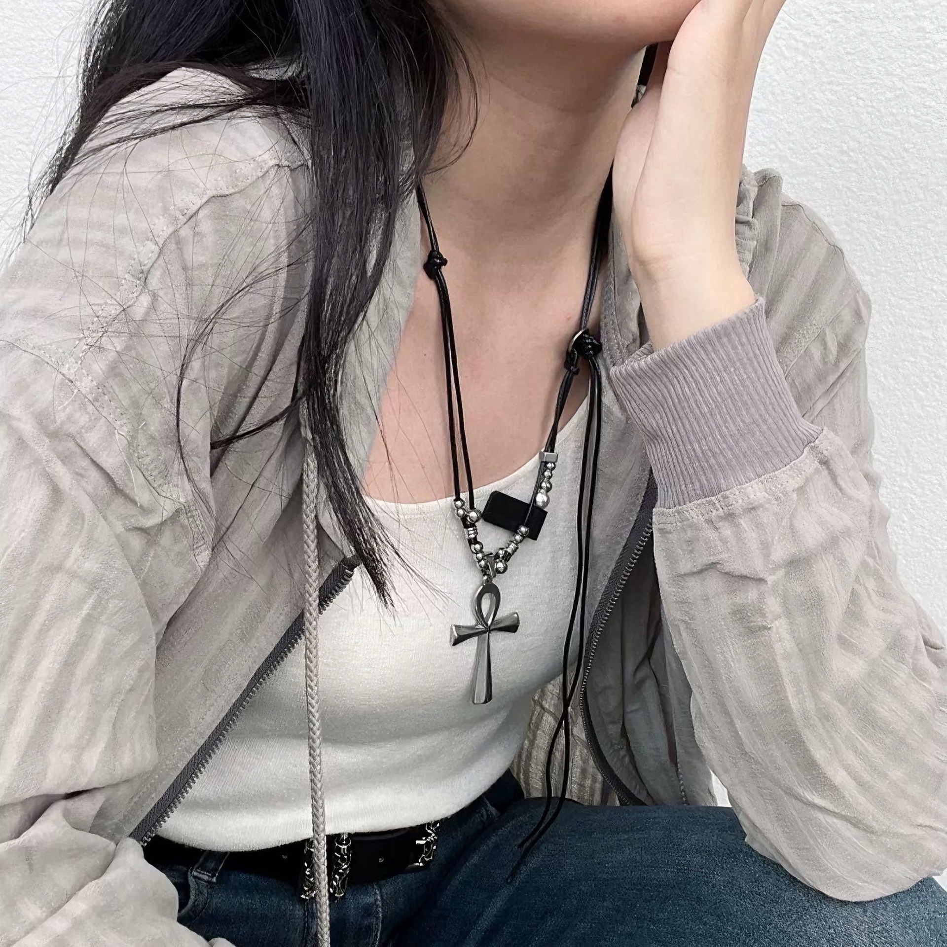 Y2K重工十字架项链千禧辣妹甜酷亚文化小众设计哥特风朋克锁骨链