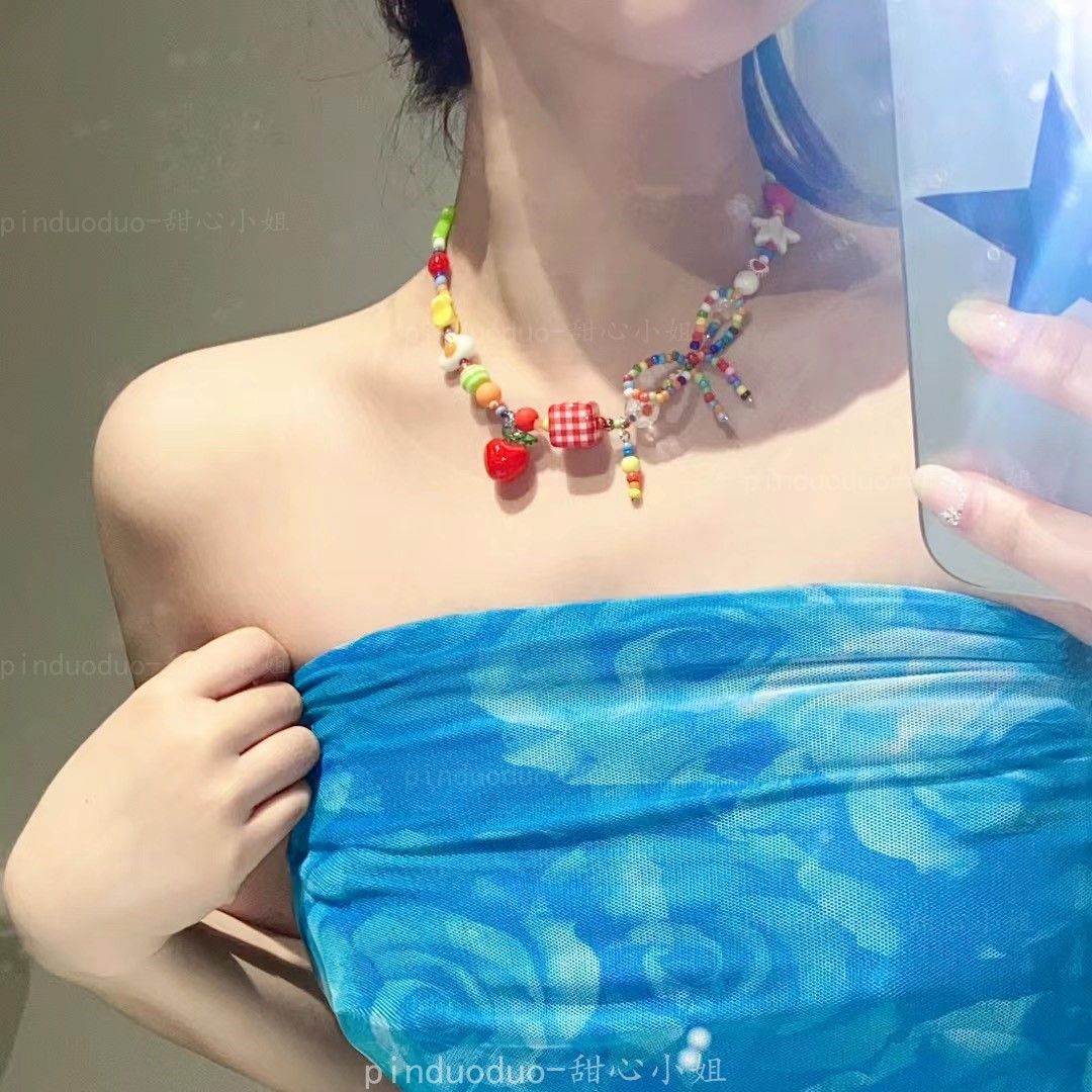 「苹果乐园」多巴胺彩色苹果星星串珠项链2025新款轻奢夏日锁骨链