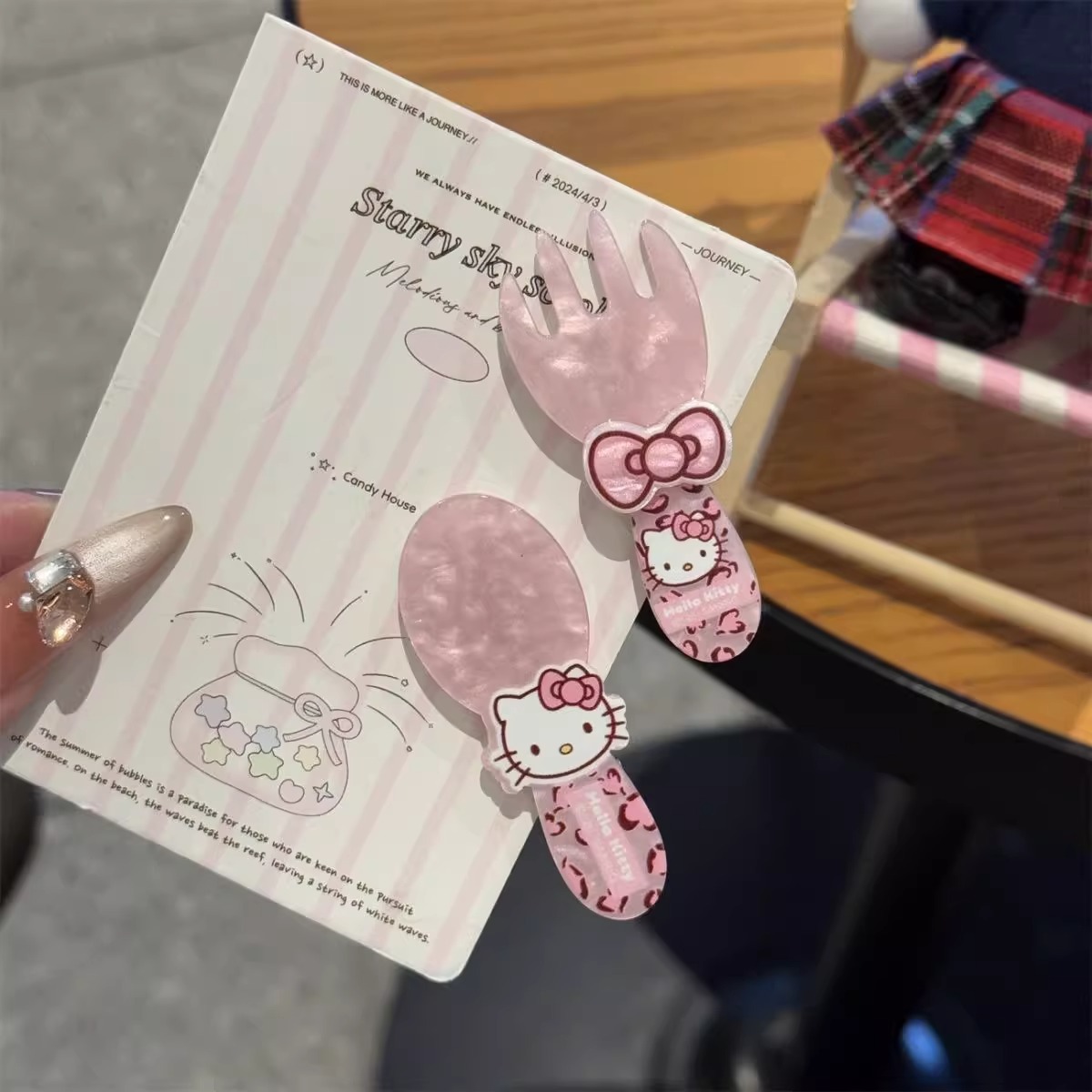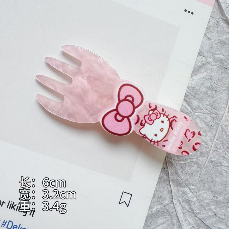 可爱粉豹纹KT猫发夹甜美少女勺子叉子刘海夹ins风高颜值鸭嘴夹
