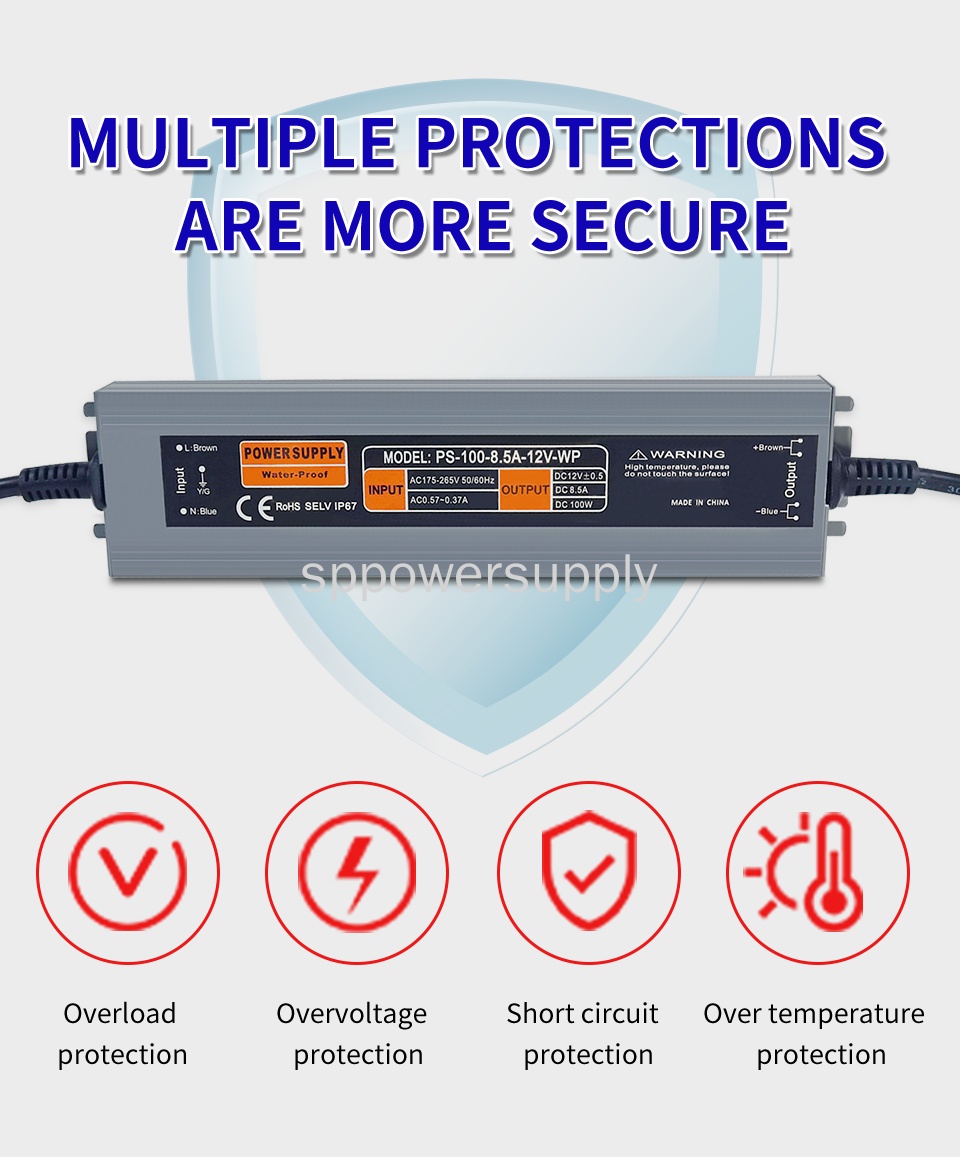 12V100W防水LED电源 IP67 |