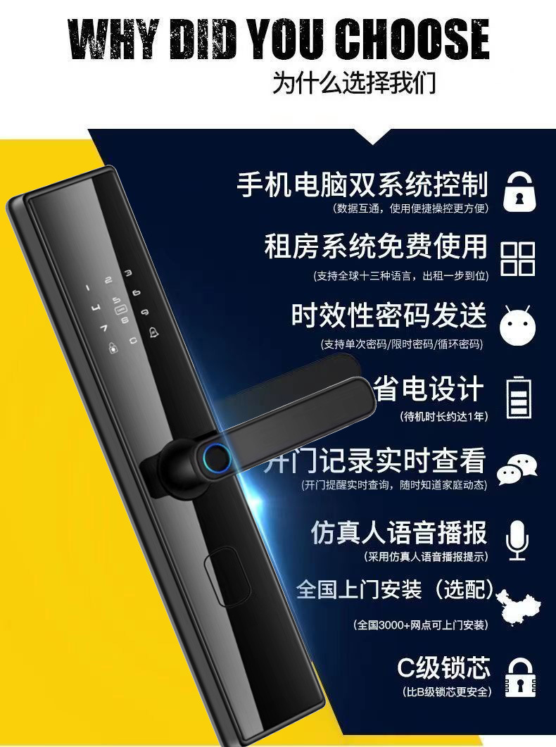 智能锁通通锁指纹锁家用电子锁酒店出租房电子门锁刷卡密码锁外贸 English | 投诉