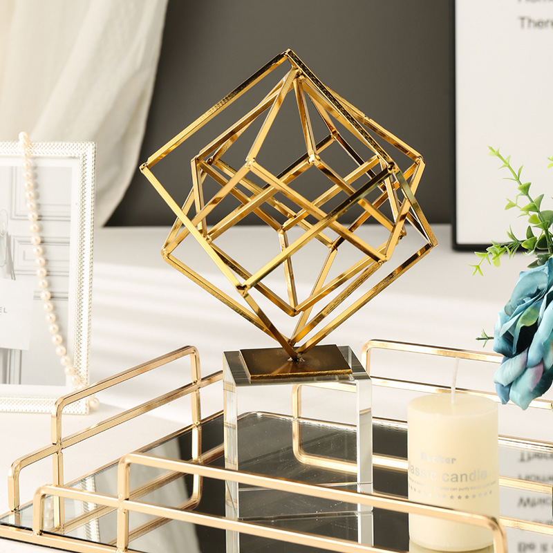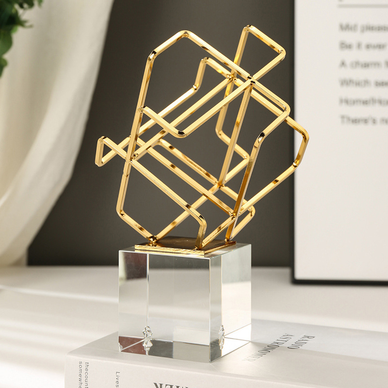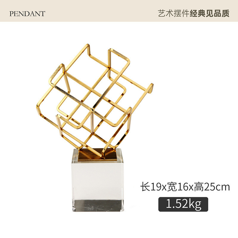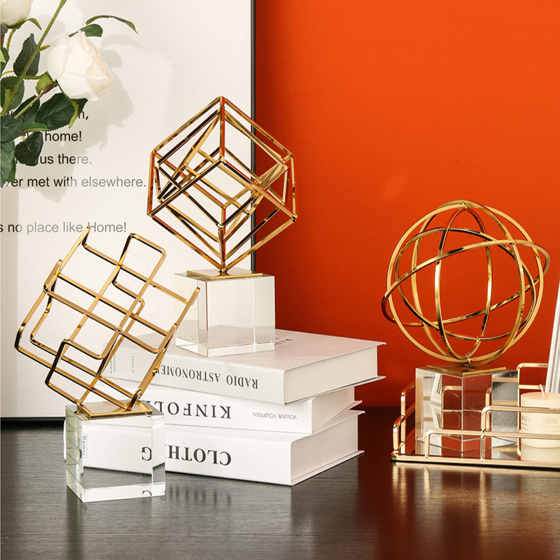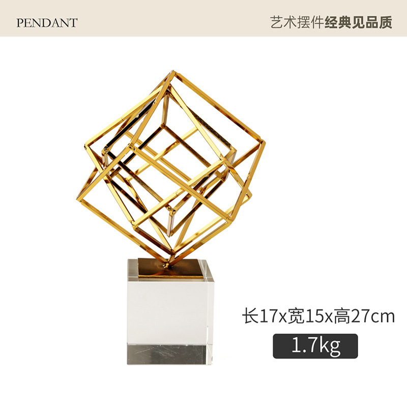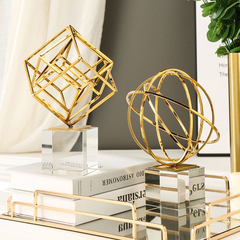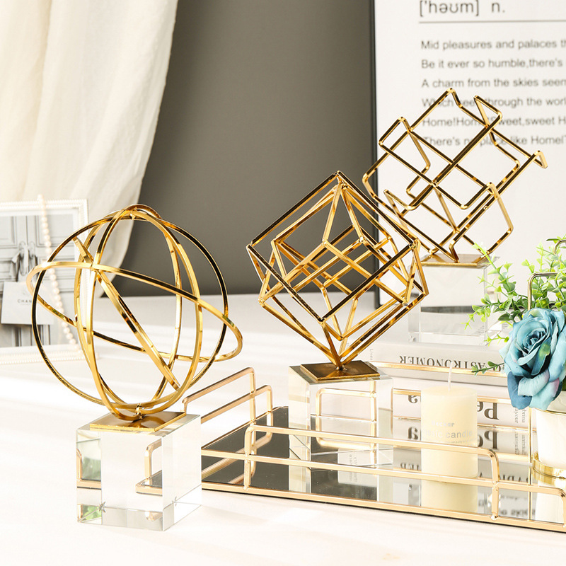 现代简约风客厅餐桌电视柜摆件金色几何装饰品创意水晶办公桌摆设
