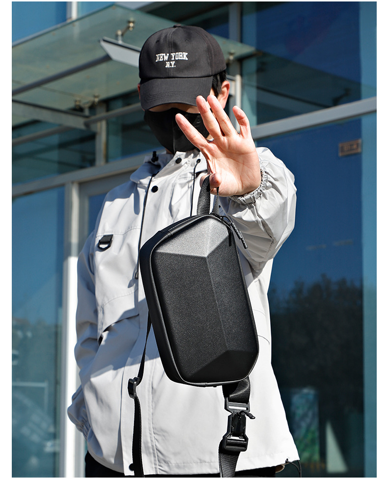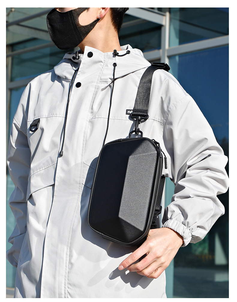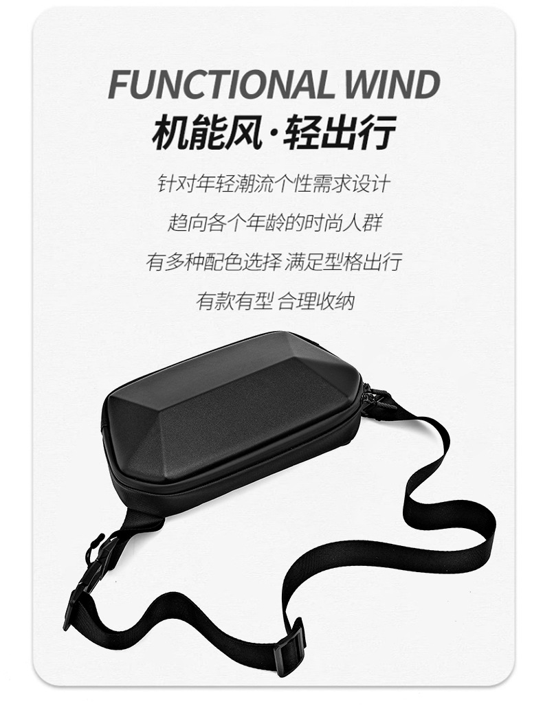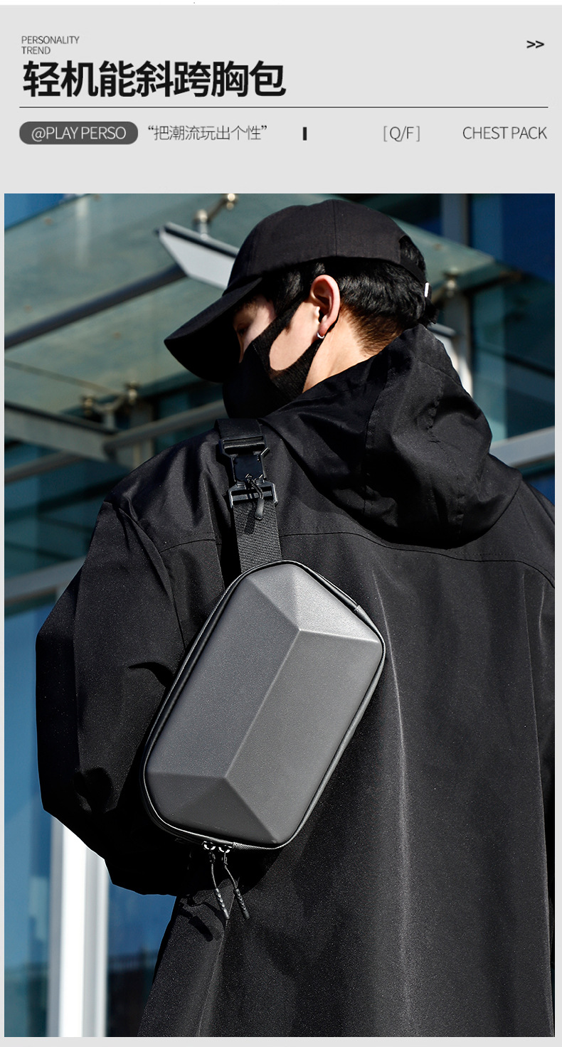 新款高品质休闲胸包出差旅行多功能腰包硬壳斜跨机能包一件代发 English | 投诉