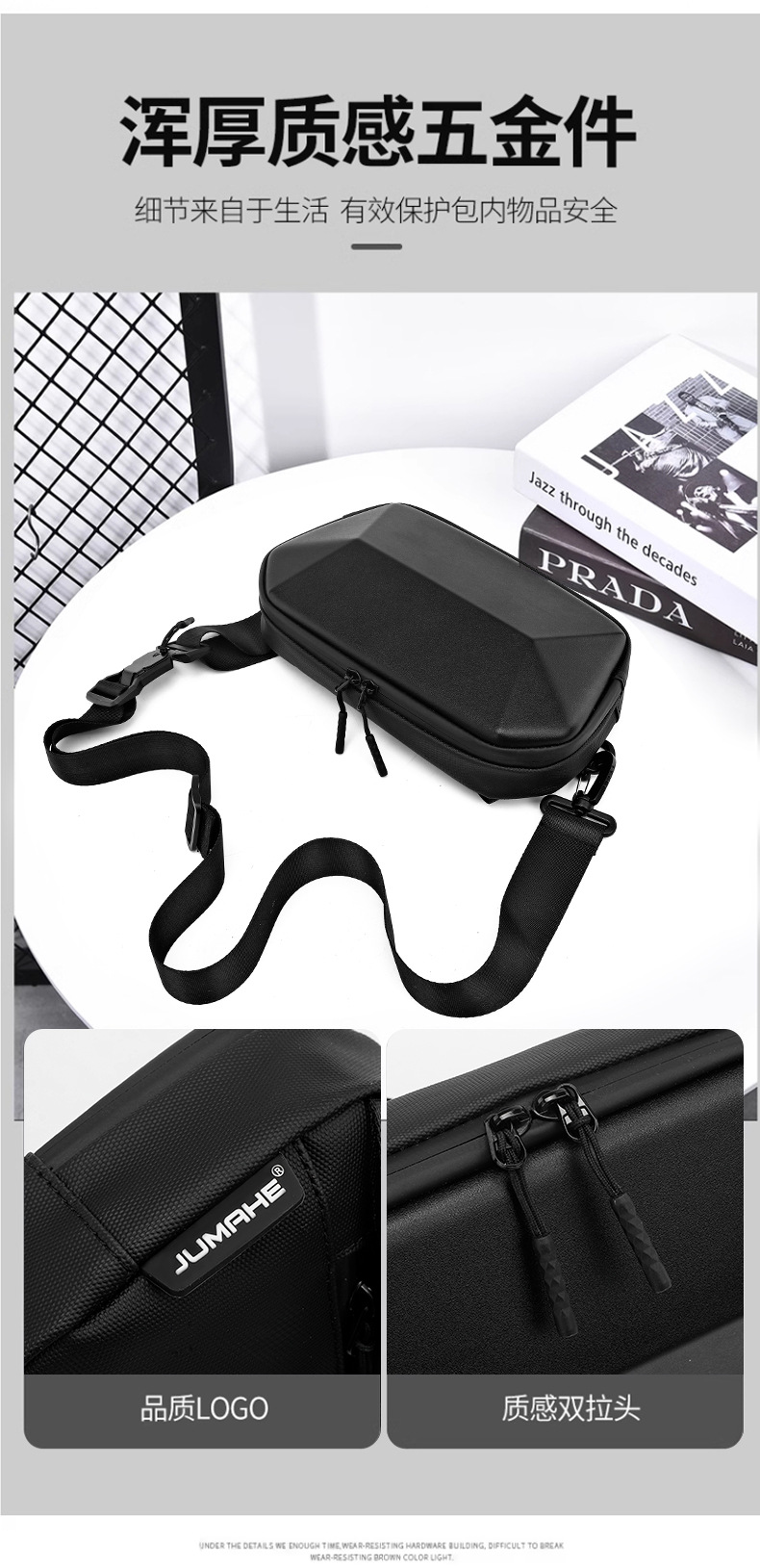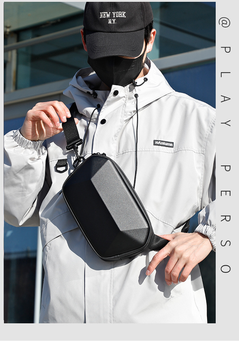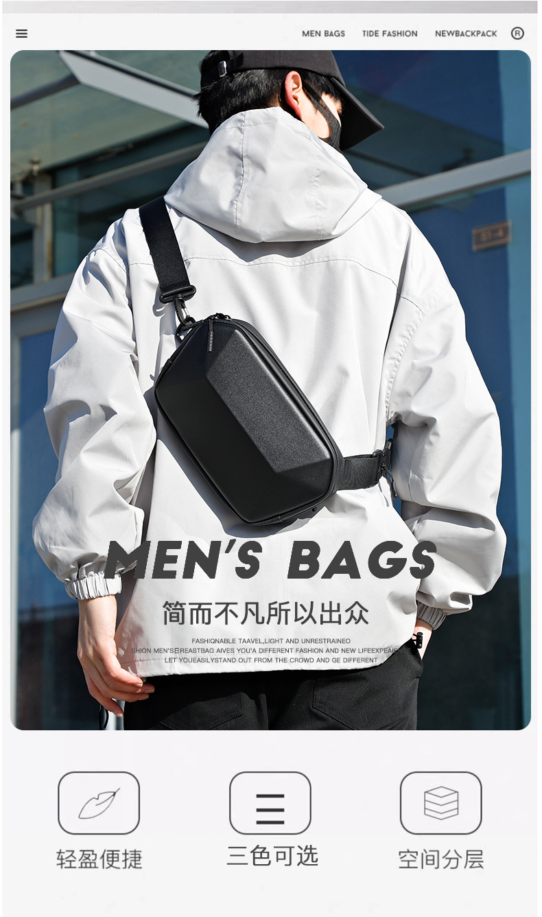 新款高品质休闲胸包出差旅行多功能腰包硬壳斜跨机能包一件代发 English | 投诉