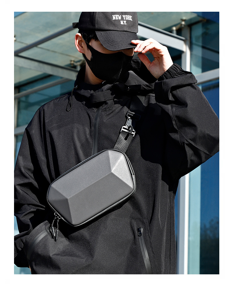 新款高品质休闲胸包出差旅行多功能腰包硬壳斜跨机能包一件代发