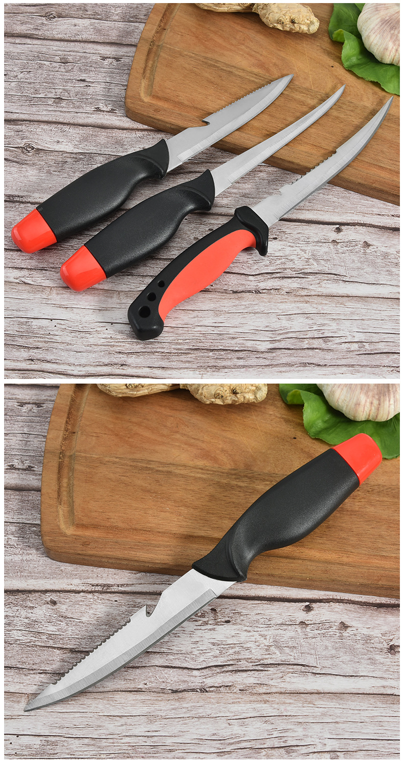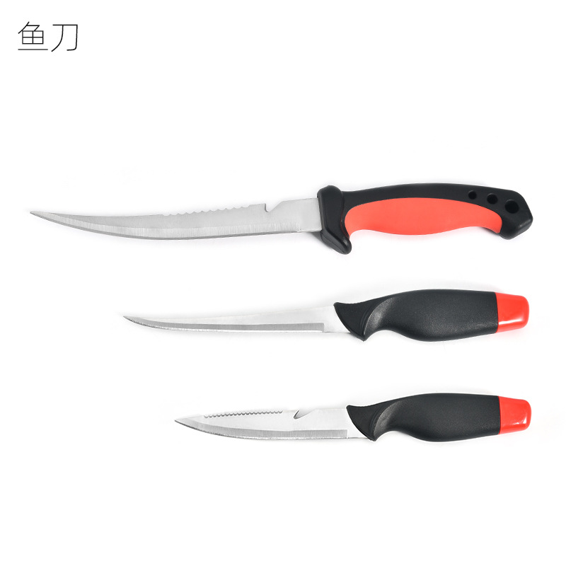 厂家现货不锈钢浮水鱼刀片鱼刀多功能厨用刀户外鱼刀锯齿刀带刀鞘