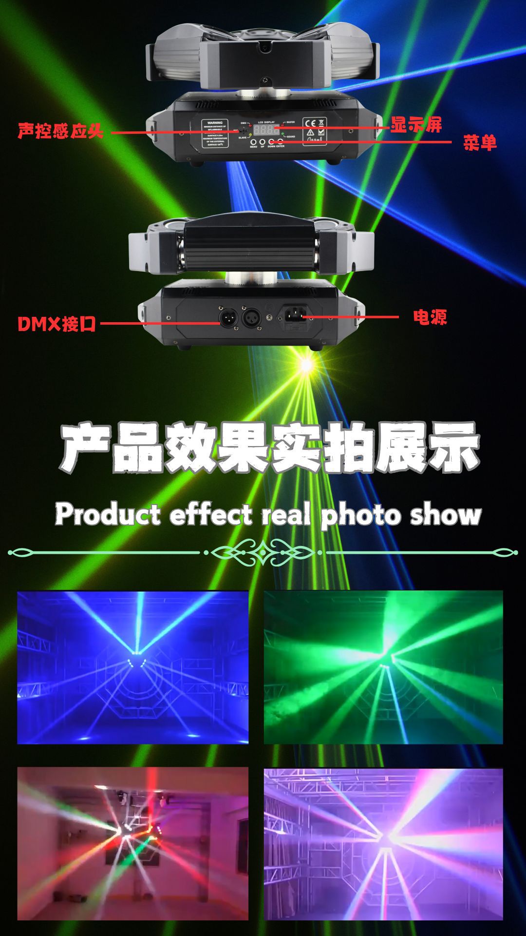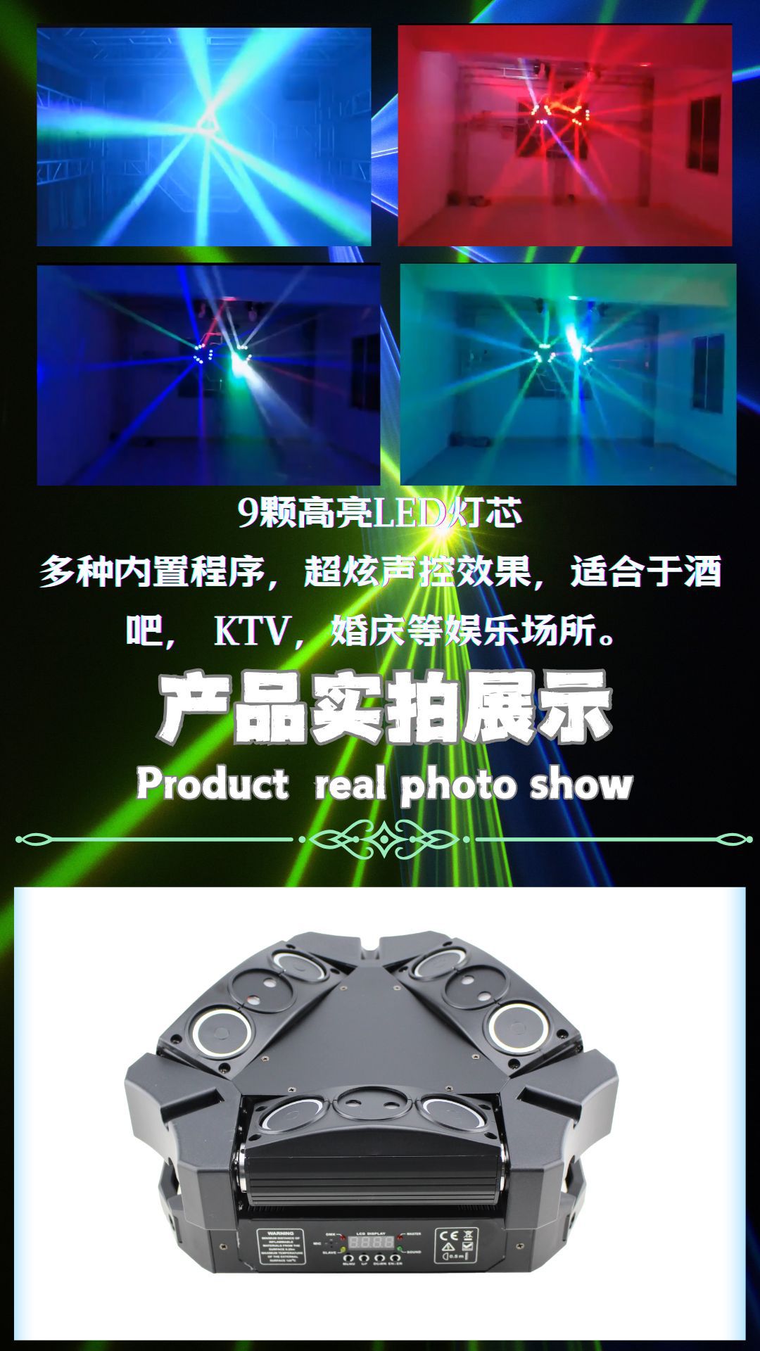 其他功能:多种内置程序,超炫声控效果,适合于酒吧, KTV,婚庆等娱乐场所。