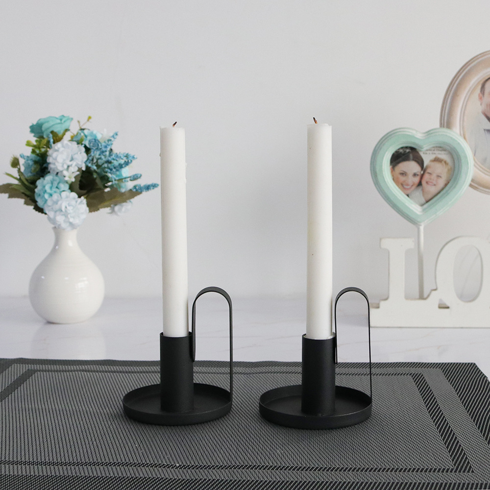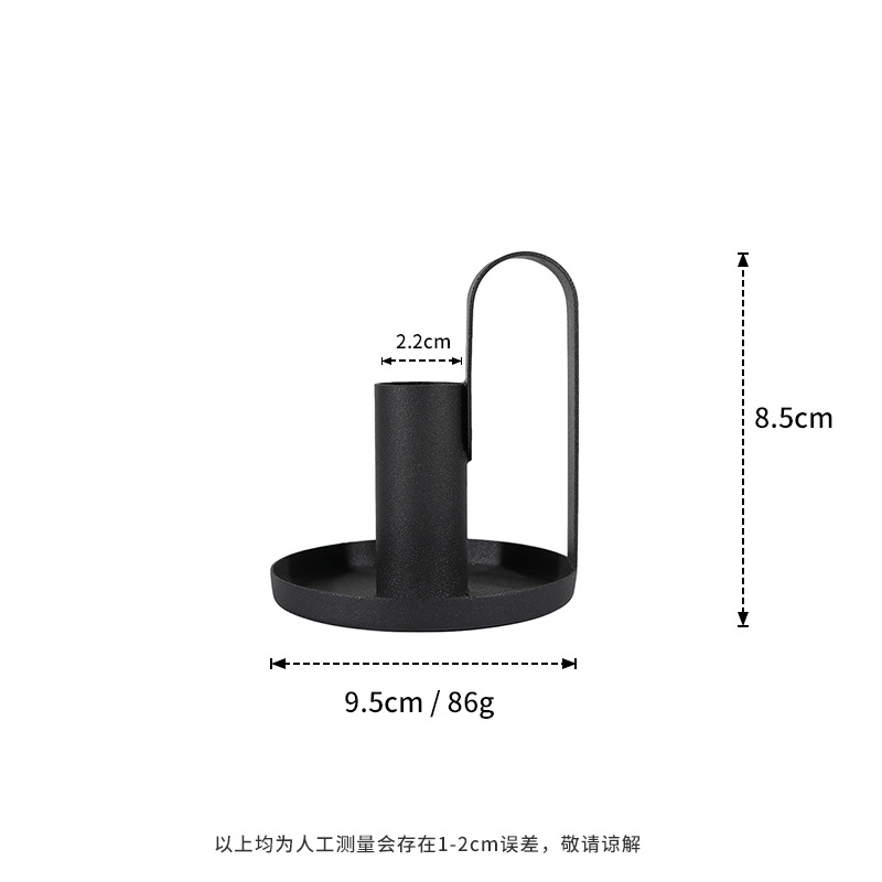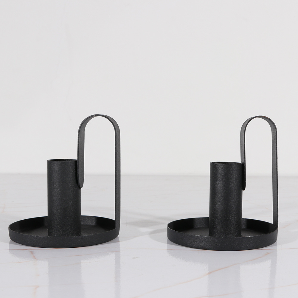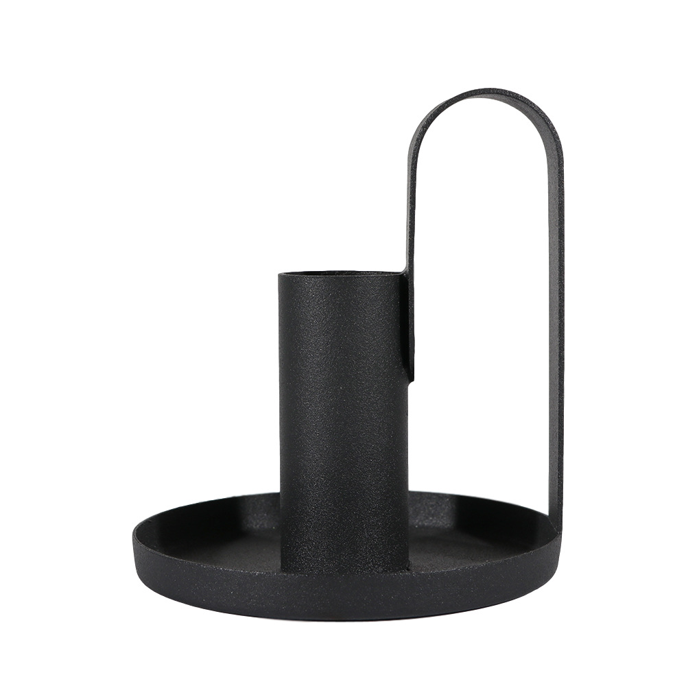铁艺黑色带把手烛台架 家居客厅装饰摆件 拍摄道具复古风蜡烛台