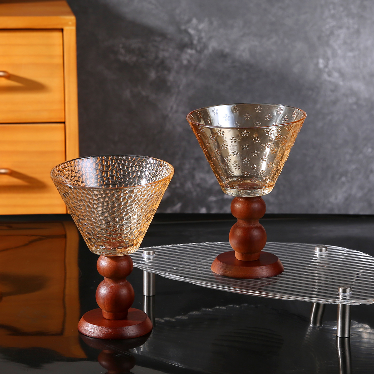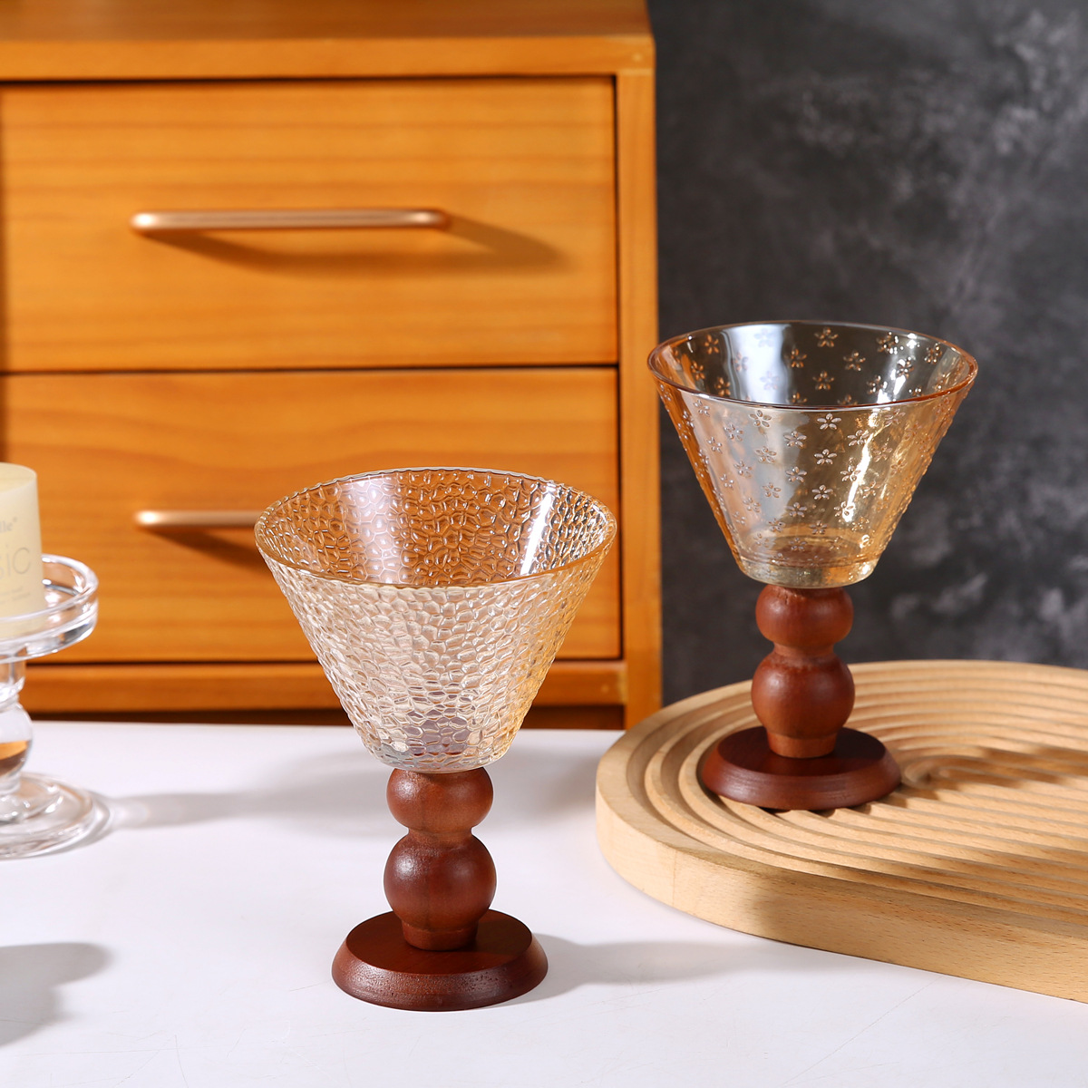 法式复古玻璃高脚杯高级感中古风甜品碗酸奶杯冰淇淋杯燕窝雪糕碗