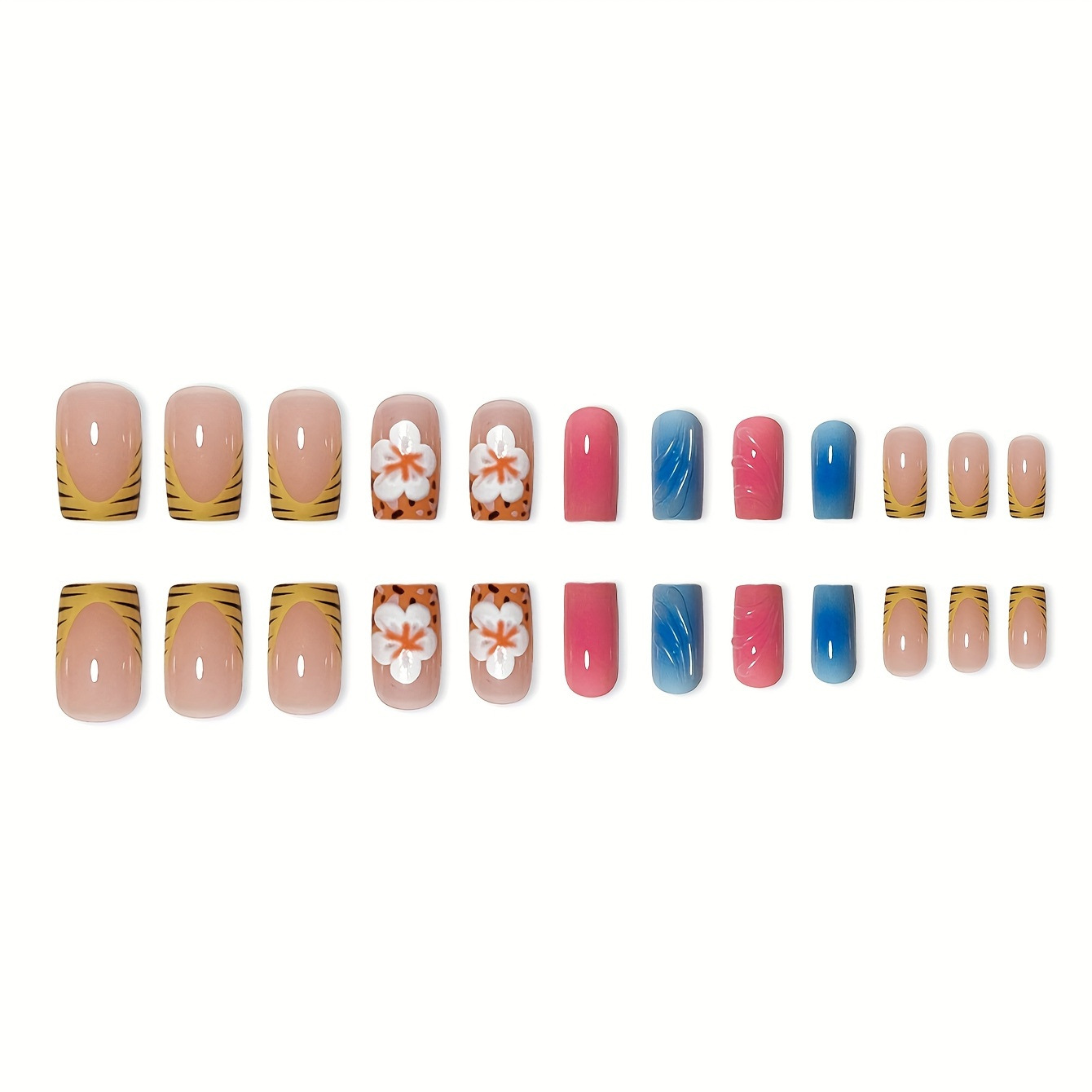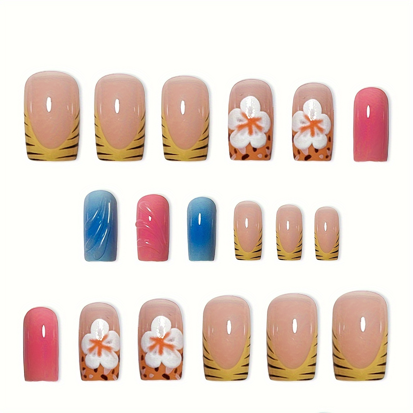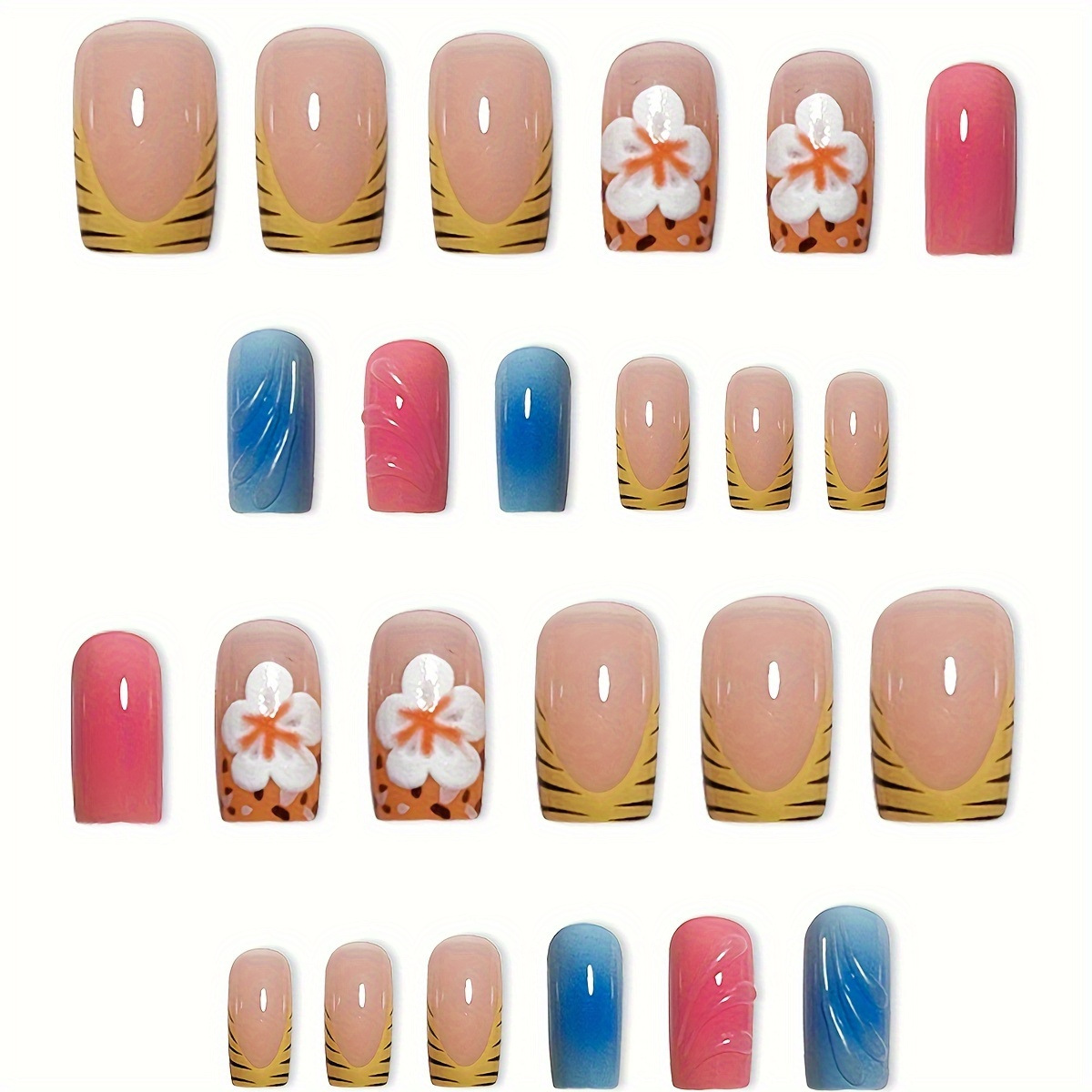 跨境热售方形假指甲3D波纹甜美花朵穿戴甲可拆卸假指甲成品批发 English | 投诉