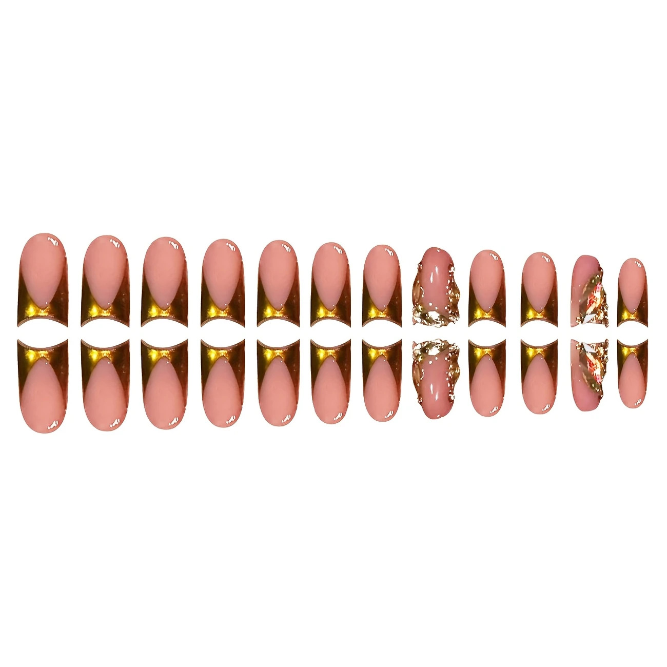 跨境热售鸭嘴型假指甲简约纯色高级感碎钻设计穿戴甲甲片成品批发 English | 投诉