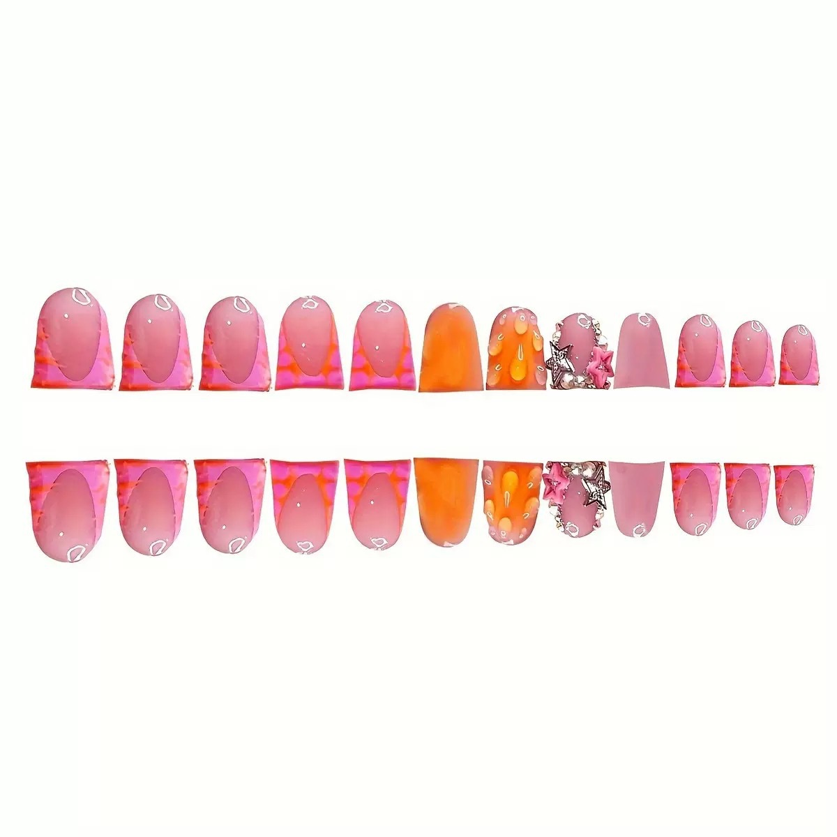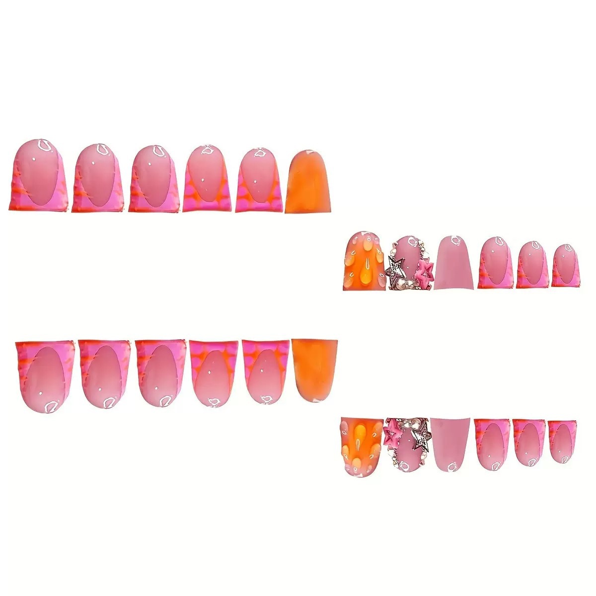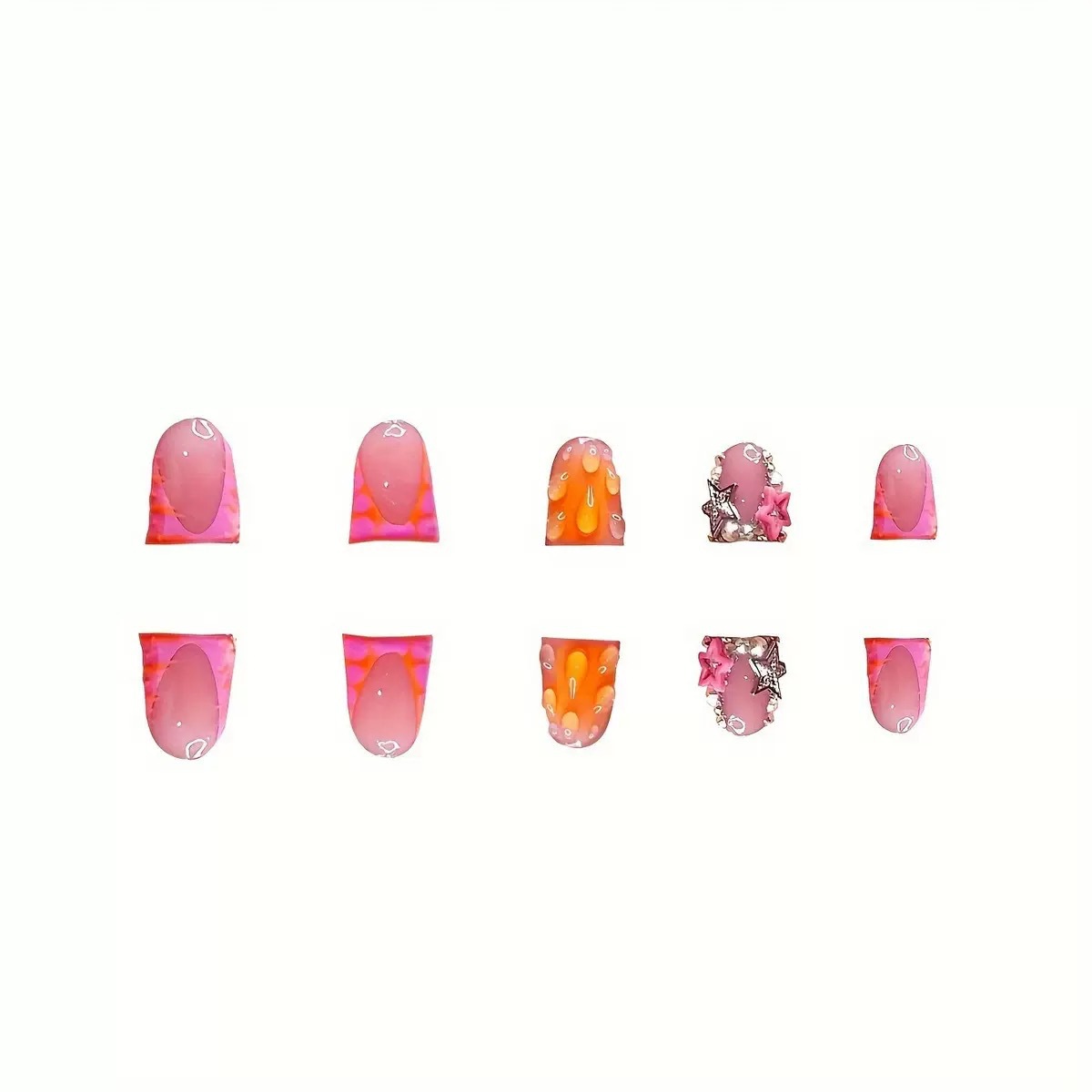 跨境热售鸭嘴型假指甲3D立体水滴星星型闪钻甜美可爱假指甲片批发